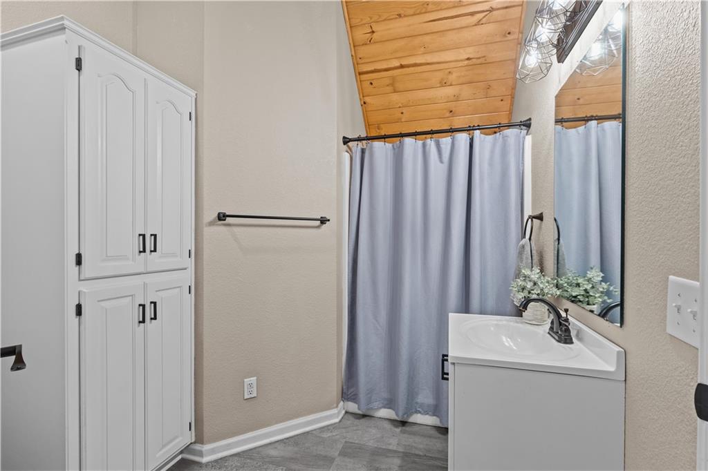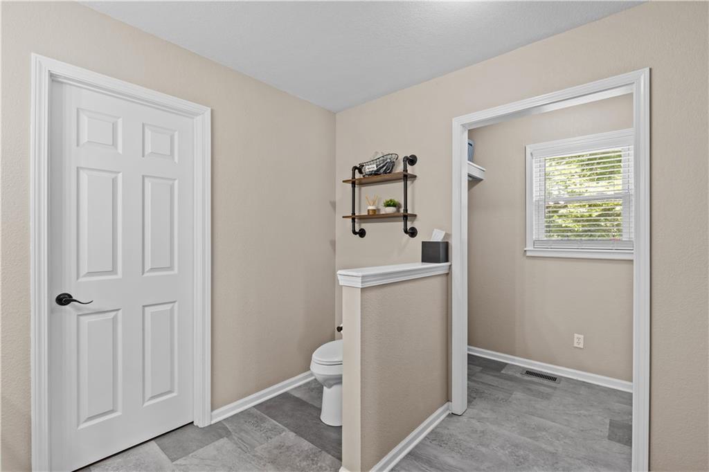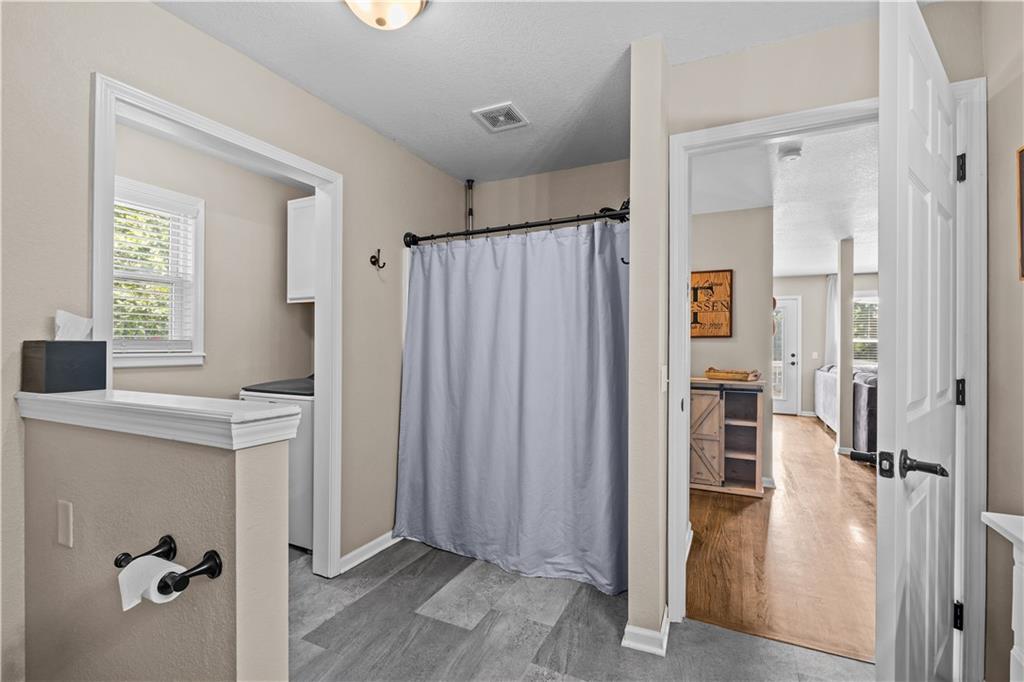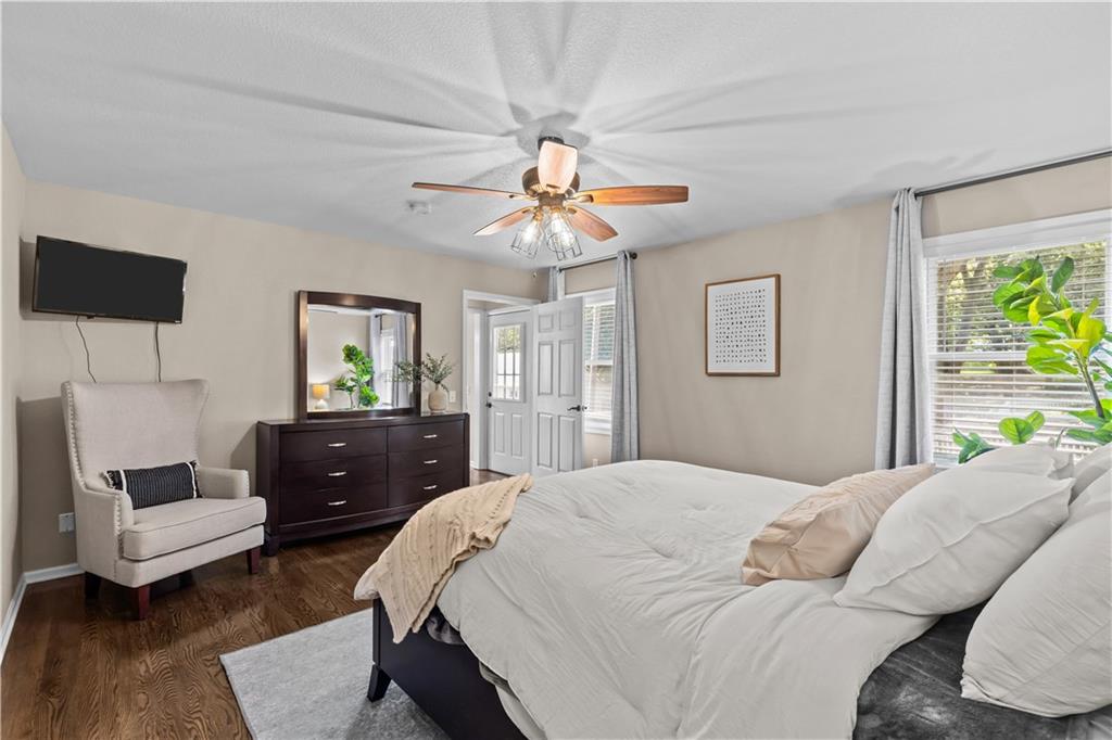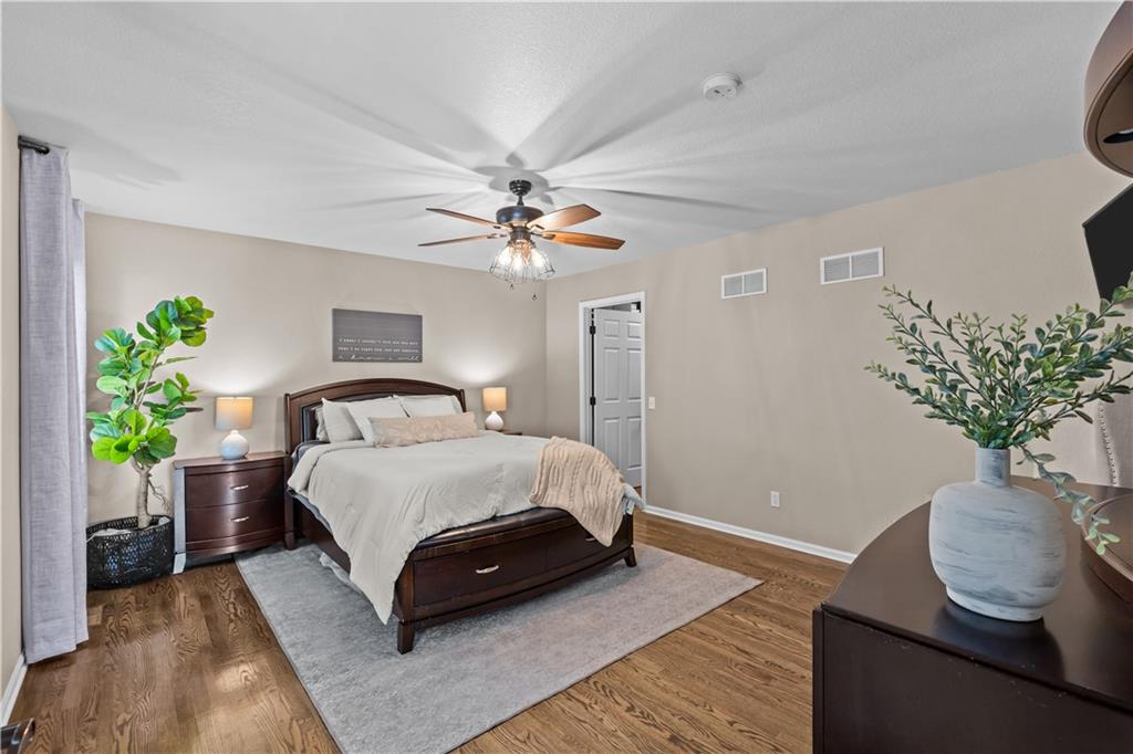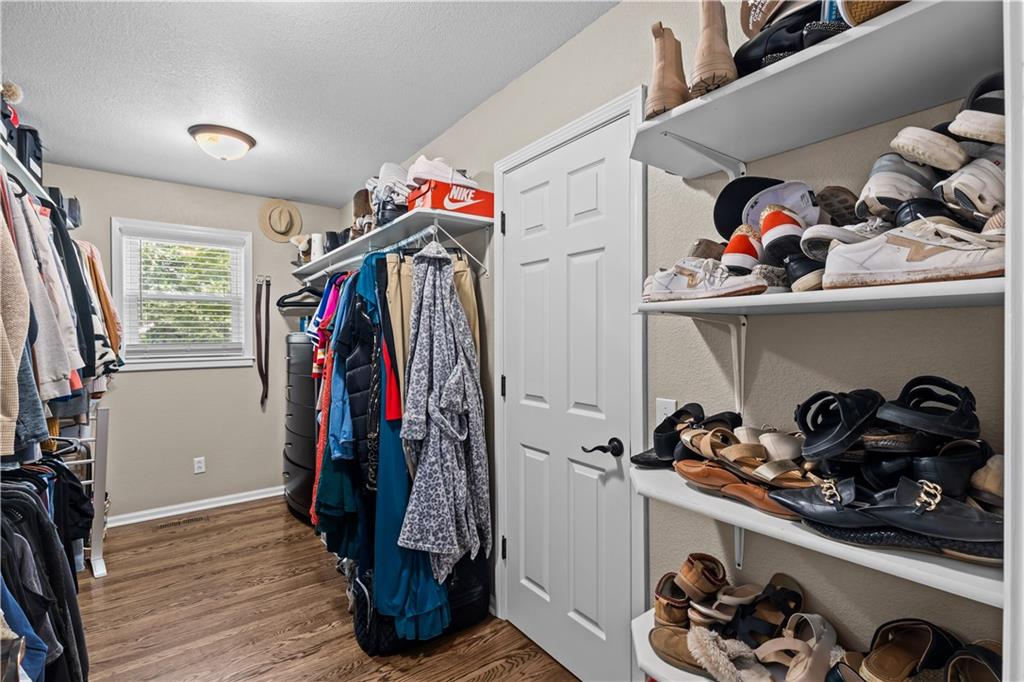 The spacious primary suite is conveniently located on the main level and serves as a true retreat, featuring a large bedroom, massive walk-in closet, and entrance to a full bath with a shower.