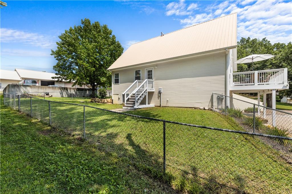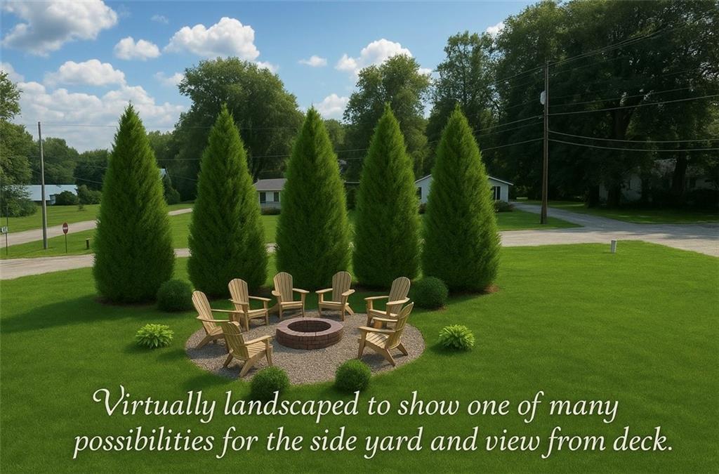 Step out onto the deck or front porch and enjoy peaceful views of a large, open grassy area—ideal for relaxing, hosting guests, or letting pets roam. Mature trees and rock landscaping enhance both beauty and function in the front yard.