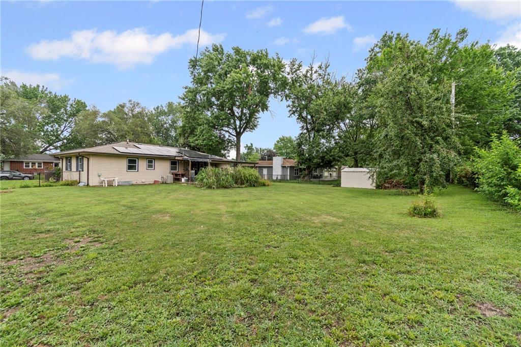 Ranch home on a quiet street in the charming, historical town of Excelsior Springs! Property offers a large backyard with covered porch, solar panels on roof installed and paid for outright one year ago, making electric bills under $60 during the hottest months of summer! Home offers two main level bedrooms with 1.5 bathrooms and a large kitchen and living room with an open staircase to the basement. Basement is completely finished with two non-conforming bedrooms, a full bathroom, laundry and additional living room.