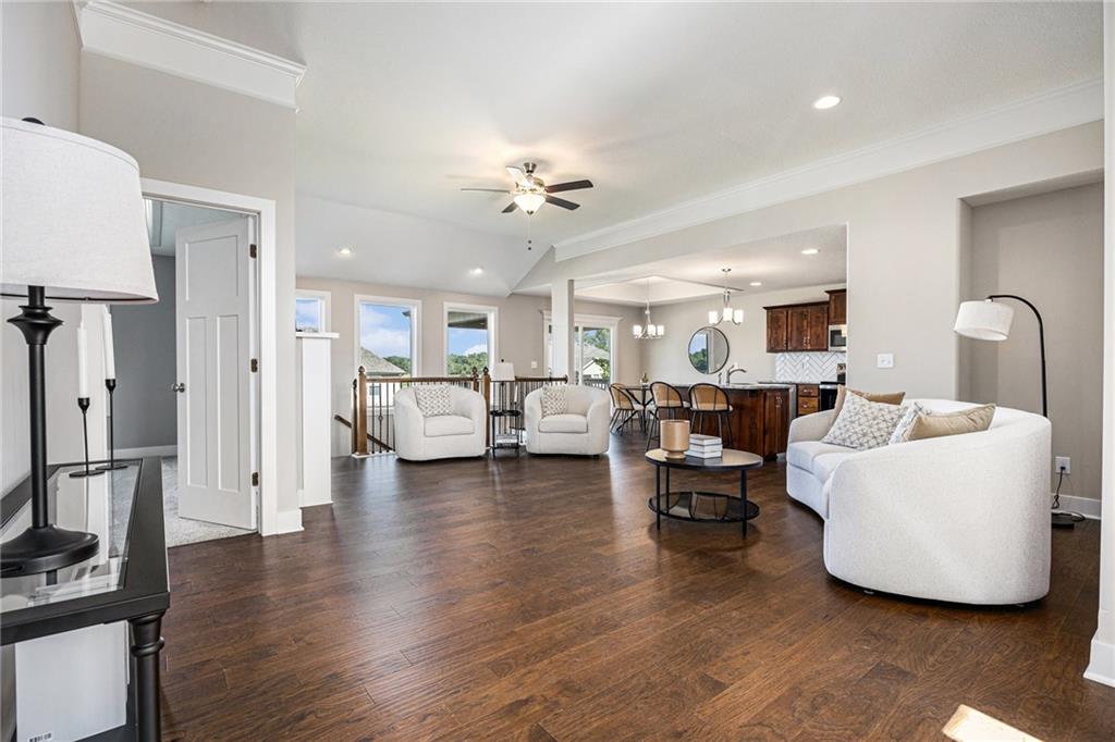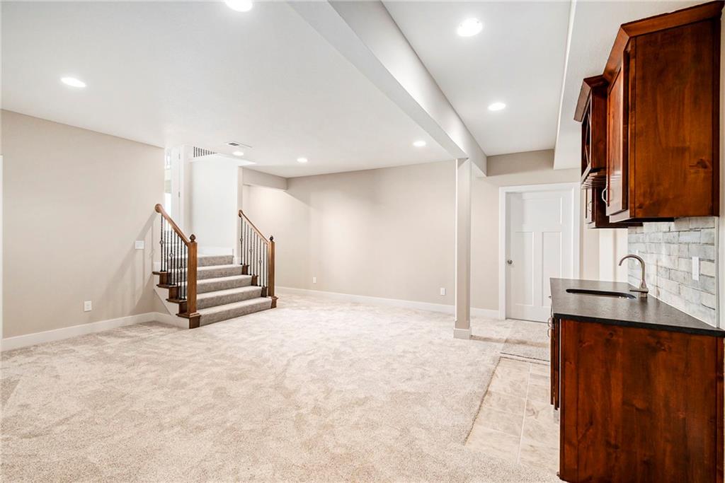 Downstairs, the fully finished lower level includes a second living space, two additional bedrooms, a full bath, and plenty of room to relax or host guests with a wet-bar!