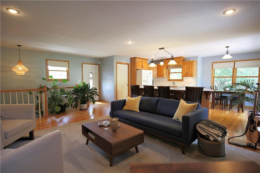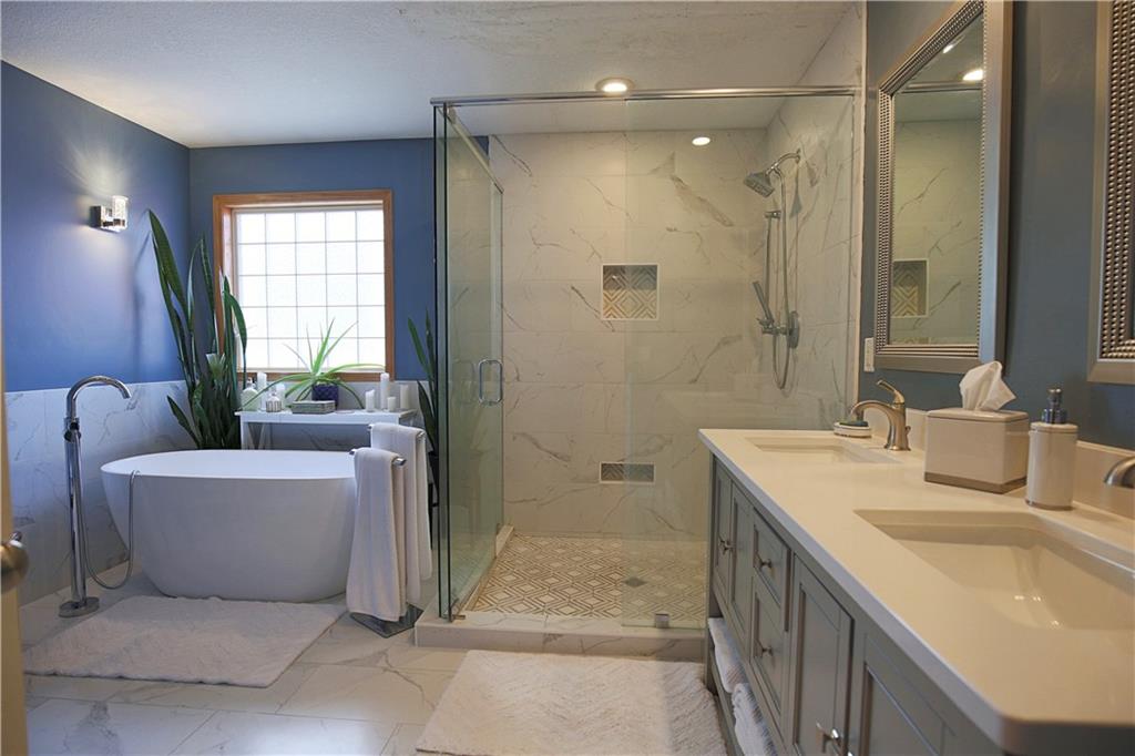The interior features an open kitchen, dining, and living area with an island, fireplace, and plenty of space to gather. The primary suite includes a sitting room and a stunningly renovated spa-like bath with a soaking tub and walk-in shower. A main-level laundry room adds convenience, while the finished lower level expands your living space with a family room and full bath.