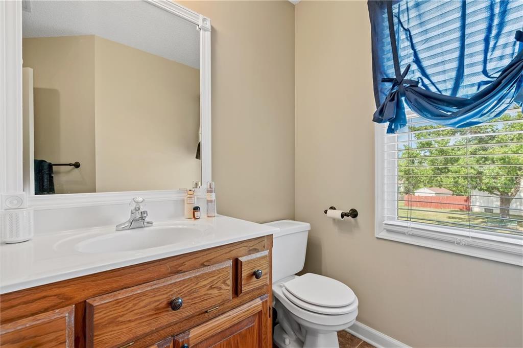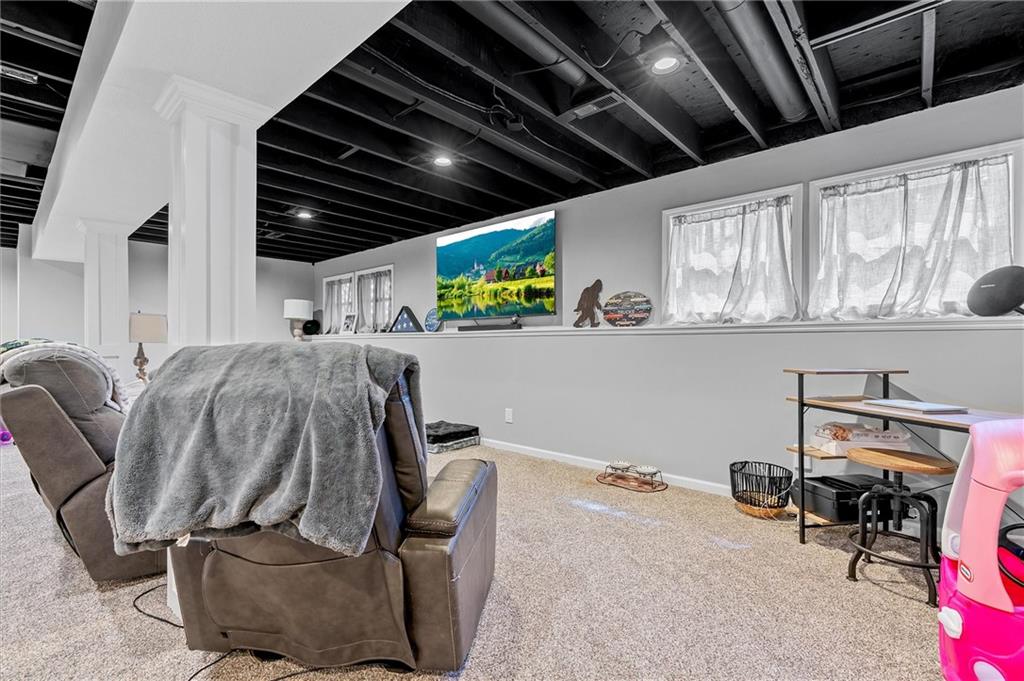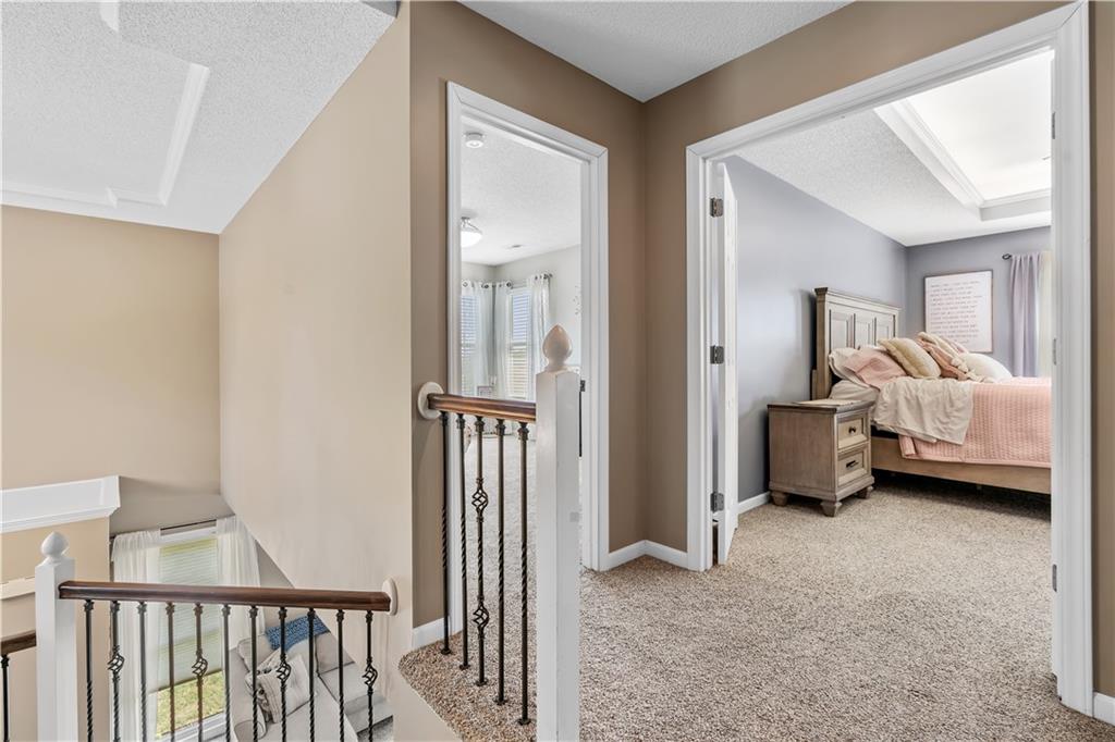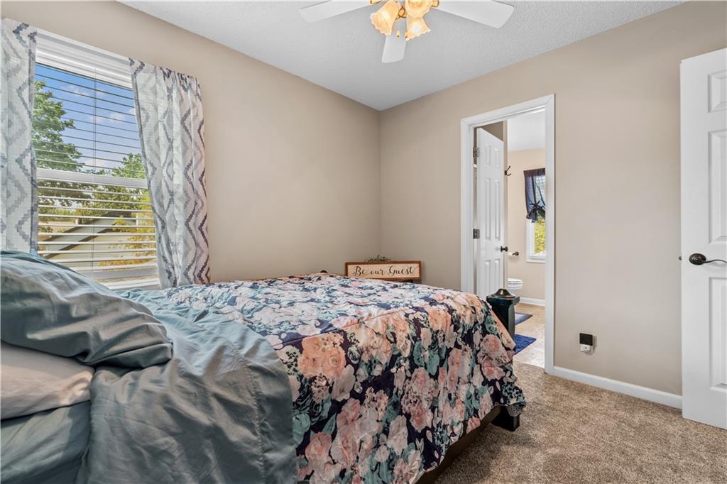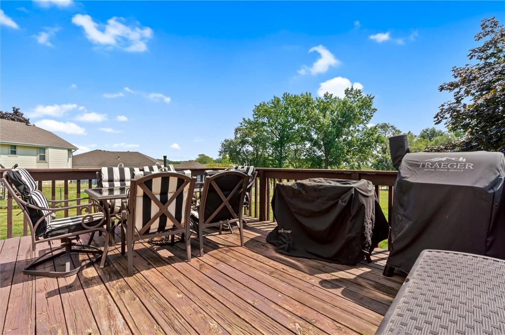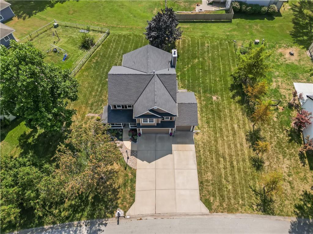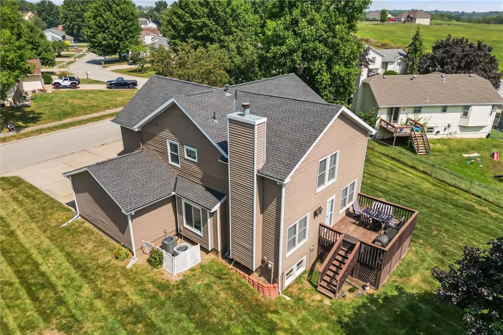 Beautifully situated on the west side, this spacious 2 story home with almost 3,000 square foot offers the perfect blend of comfort, style, and convenience. Just minutes from shopping, grocery stores, and more, the location is hard to beat. A welcoming covered front porch sets the tone before stepping inside, where a stunning staircase ties the main level together with the second level. The entry area includes a half bath, and the large living room boasts soaring ceilings and plenty of natural light. Off the living room, a generous dining room accommodates large gatherings, while the cozy hearth room features a gas fireplace with a striking mantle. The kitchen, dining, and hearth areas flow seamlessly with beautiful wood floors, giving an open concept feel. The oversized kitchen island, abundance of cabinets, and included appliances make it ideal for both cooking and entertaining. Upstairs you’ll find four spacious bedrooms and three full bathrooms, including a Jack and Jill bath connecting two bedrooms. The master suite offers a large retreat with a spa like bath, featuring double sinks, a jacuzzi tub, walk-in shower, and expansive walk-in closet. A dedicated upstairs laundry room adds convenience.The finished basement provides even more living space with new flooring, a half bath, a bar area, and large windows for natural light. A storage area ensures plenty of room for organization. Outside, the home includes a 3 car garage, a large deck perfect for entertaining, and a beautiful treed backyard that was once a double lot, offering extra space and privacy. This home truly has it all space, updates, and a fantastic setting.