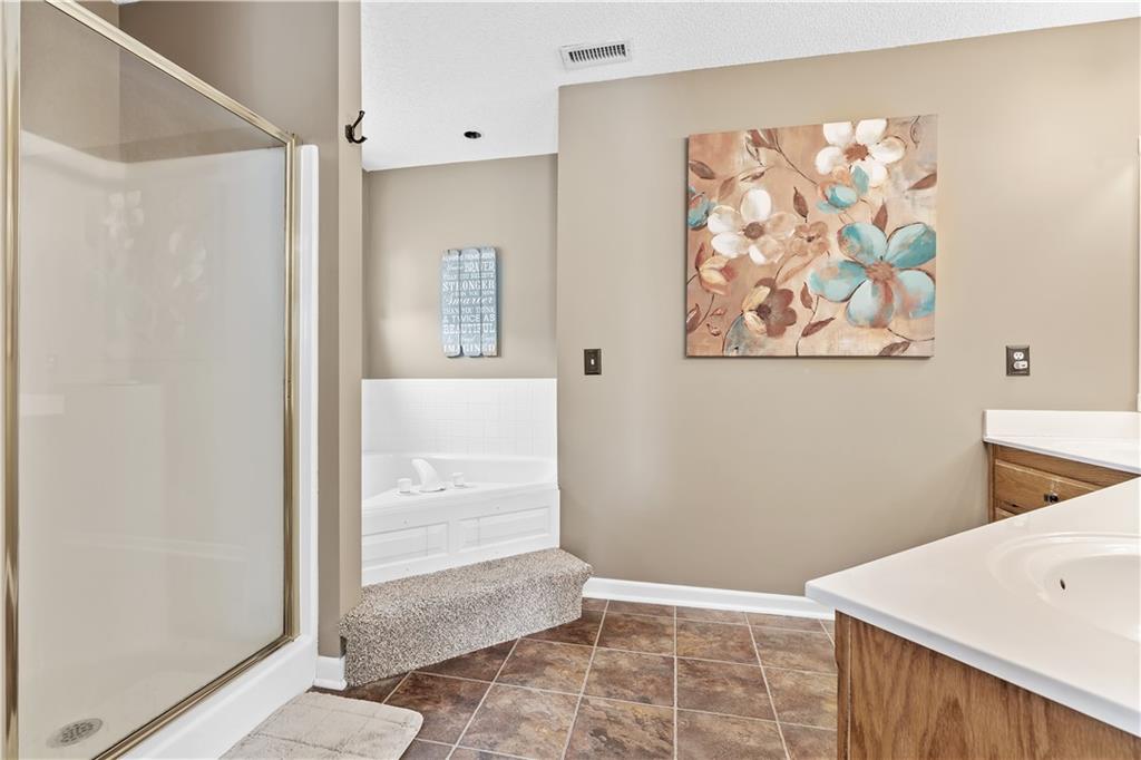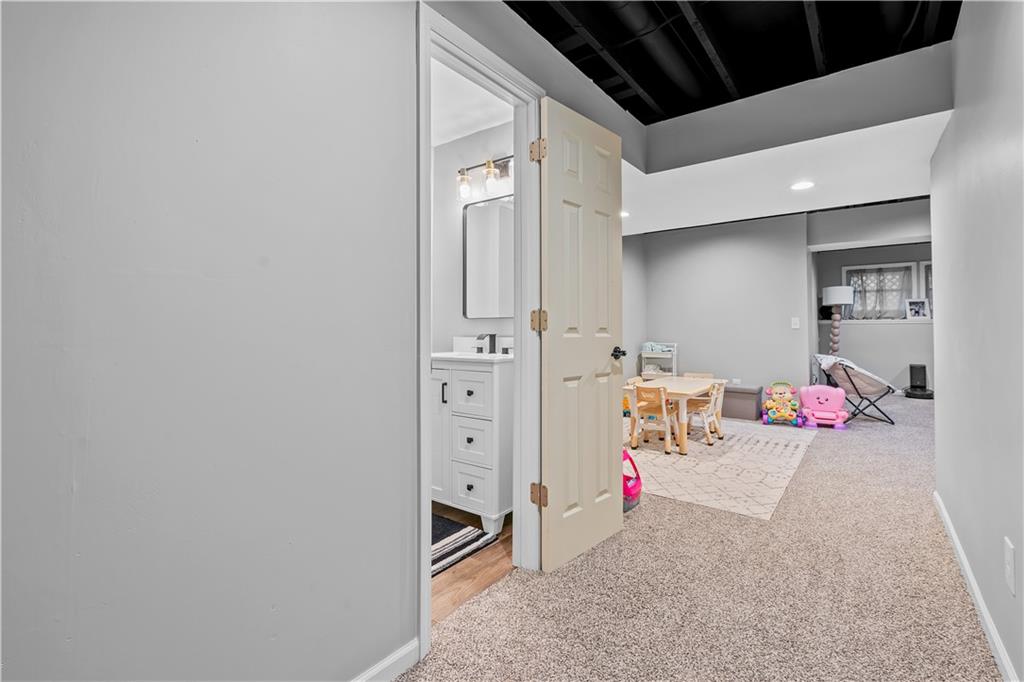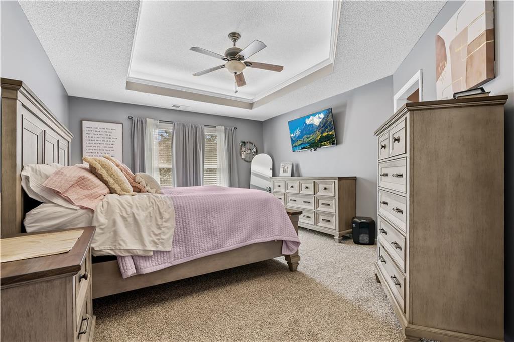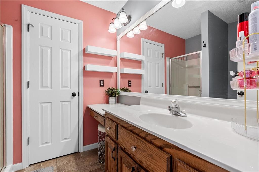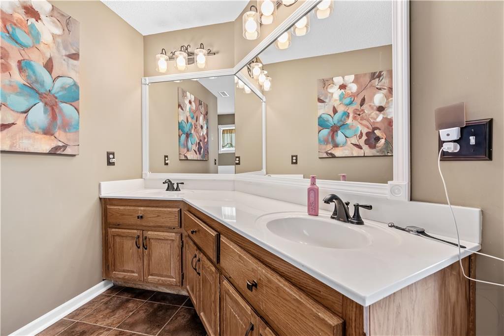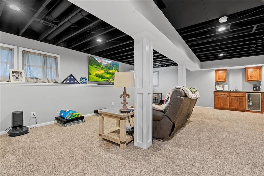 Beautifully situated on the west side, this spacious 2 story home with almost 3,000 square foot offers the perfect blend of comfort, style, and convenience. Just minutes from shopping, grocery stores, and more, the location is hard to beat. A welcoming covered front porch sets the tone before stepping inside, where a stunning staircase ties the main level together with the second level. The entry area includes a half bath, and the large living room boasts soaring ceilings and plenty of natural light. Off the living room, a generous dining room accommodates large gatherings, while the cozy hearth room features a gas fireplace with a striking mantle. The kitchen, dining, and hearth areas flow seamlessly with beautiful wood floors, giving an open concept feel. The oversized kitchen island, abundance of cabinets, and included appliances make it ideal for both cooking and entertaining. Upstairs you’ll find four spacious bedrooms and three full bathrooms, including a Jack and Jill bath connecting two bedrooms. The master suite offers a large retreat with a spa like bath, featuring double sinks, a jacuzzi tub, walk-in shower, and expansive walk-in closet. A dedicated upstairs laundry room adds convenience.The finished basement provides even more living space with new flooring, a half bath, a bar area, and large windows for natural light. A storage area ensures plenty of room for organization. Outside, the home includes a 3 car garage, a large deck perfect for entertaining, and a beautiful treed backyard that was once a double lot, offering extra space and privacy. This home truly has it all space, updates, and a fantastic setting.