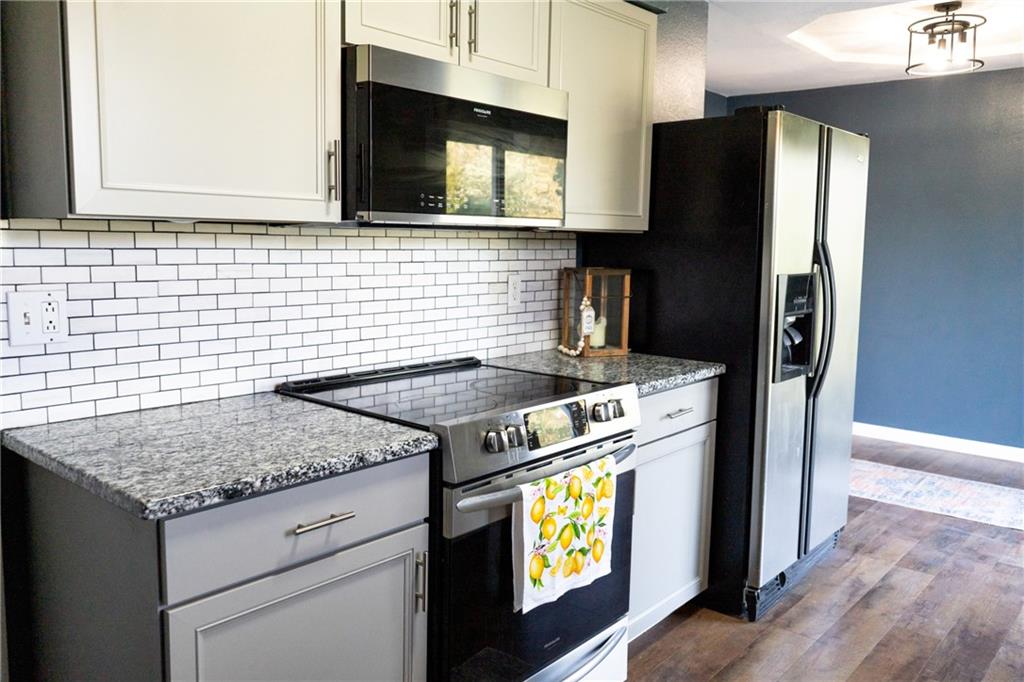 - Equipment Cooktop, Dishwasher, Dryer, Microwave, Refrigerator, Electric Range, Stainless Steel Appliance(s), Washer
