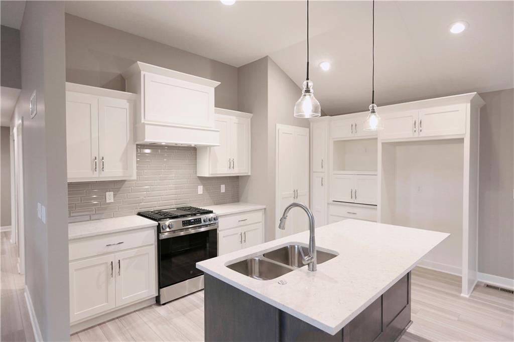 Stunning new construction with tasteful, modern-edge selections throughout—including flooring, lighting, appliances, and finishes. This open-concept layout features a beautiful kitchen island that flows into the living and dining areas, highlighted by striking custom cabinets and an upgraded gas stove. The custom entry hand railing adds a unique, upscale touch. Main-level laundry and a spacious master suite with a spa-like shower and walk-in closet offer everyday convenience. The finished walk-out basement includes a fourth bedroom and third full bath—perfect for guests or extended living. Enjoy outdoor living on the covered back deck and patio below. Situated on a spacious corner lot on a quiet cul-de-sac—an ideal location!