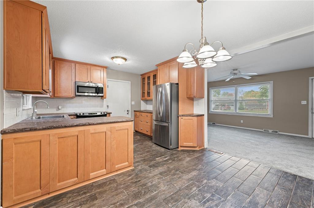 Welcome home to this 3-bedroom, 3-bath gem nestled in the quiet Rosewood subdivision within the highly rated North Kansas City School District. This well-maintained home offers comfortable one-level living with a finished basement for extra space. The inviting living area flows seamlessly into the kitchen and dining spaces, perfect for gatherings. Enjoy the large backyard on a generous 0.27-acre lot — ideal for outdoor entertaining, gardening, or play! The huge patio area is a great spot to entertain with it’s covered pavilion! The home also features a 2-car attached garage, central heating and cooling, and durable vinyl siding with a composition roof. Conveniently located near shopping, dining, and quick highway access to downtown KC. New interior paint, flooring and roof!