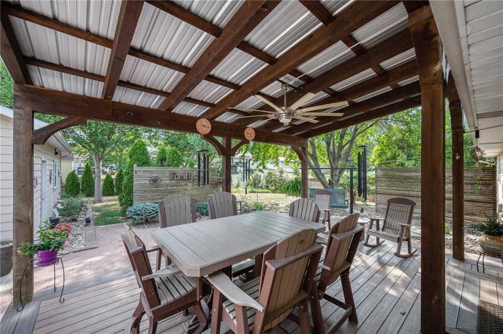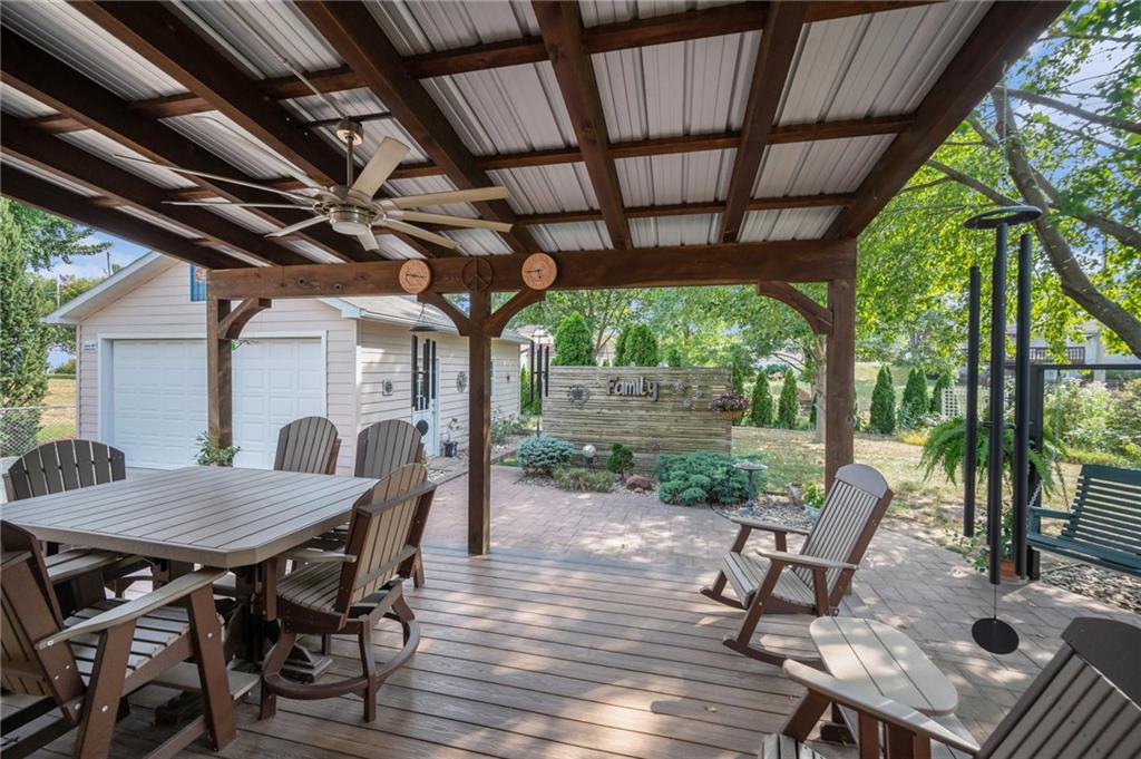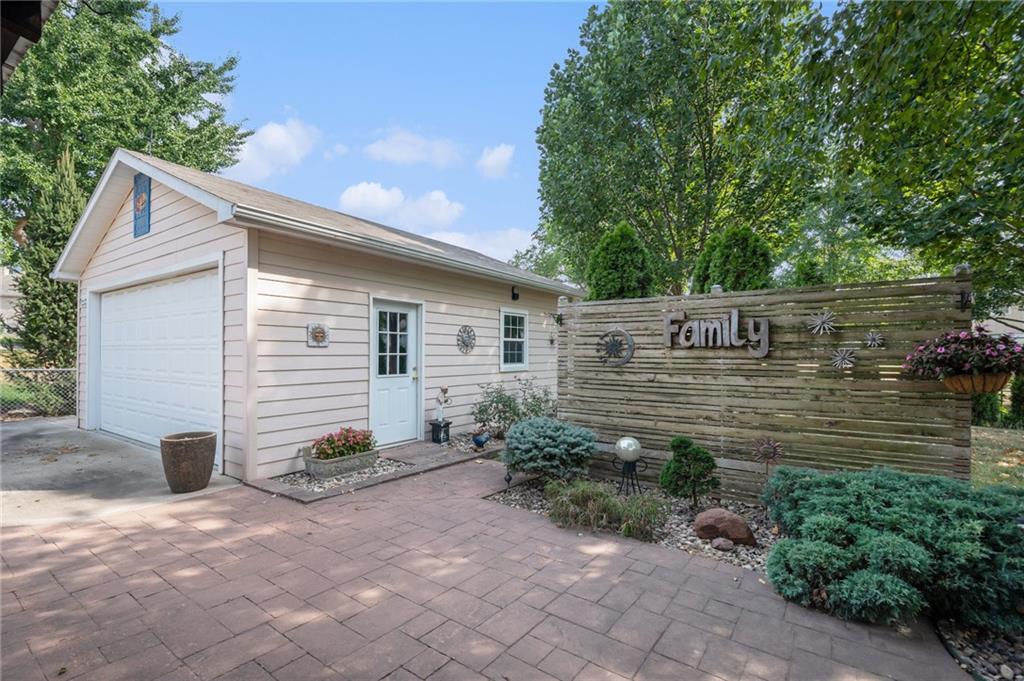 Beautifully maintained and thoughtfully updated, this true ranch in the heart of the Northland is truly move-in ready with so much to offer!! The home features a rare 4-car garage, with two attached and two detached spaces, along with a private tree-lined backyard fully enclosed by a metal fence and natural living fence. Outdoors, you’ll find a large covered composite deck with a ceiling fan, stamped concrete patio, concrete pad already set up for a hot tub, and even a swing perfect for relaxing and taking in the serene setting. Inside, the updated kitchen boasts an abundance of cabinetry, a massive granite island with storage and seating, stainless steel appliances, tiled flooring and backsplash, and a sliding door that frames the dreamy backyard. The bathrooms have been tastefully updated with tiled floors and showers and extra cabinetry for plenty of storage in the hall bathroom. Primary suite offers an en-suite bath with tiled shower, a spacious walk-in closet and additional built-ins. Additional features include two fireplaces, crown molding, two laundry hookups—one on the main level and one in the basement—an updated 200-amp electrical service, partially finished basement already stubbed for a bathroom, water softener, central vac, and tankless water heater. Conveniently located near restaurants, shops, highways, parks and schools. With so many extras and in pristine condition, there is nothing to do here but move in and make this HOME!!