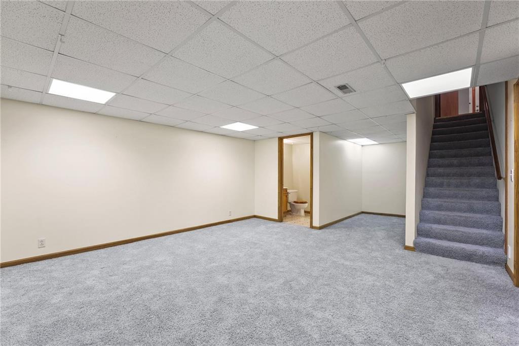 All appliances stay (as is). Large walk-in closet off master bedroom bath area. Downstairs has finished room and 3/4 bath, plus lots of storage space. Central vac (equipment included – but seller did not use) HOA dues include Lawn care, snow removal, trash pick-up, exterior maintenance, roof repair (not replace). Full coverage insurance is required (not condo).