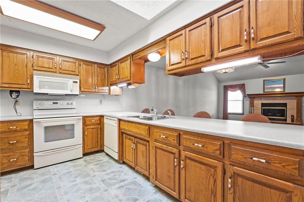 Well maintained ranch townhome in Gladstone. Close to grocery stores and gas stations. Open floor plan. Kitchen opens to large living/dining combo with gas start fireplace. Back deck is covered. Fenced rear yard. Laundry closet is in the kitchen.