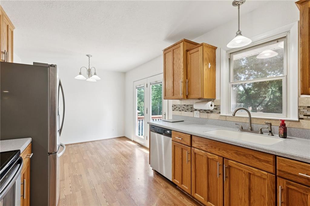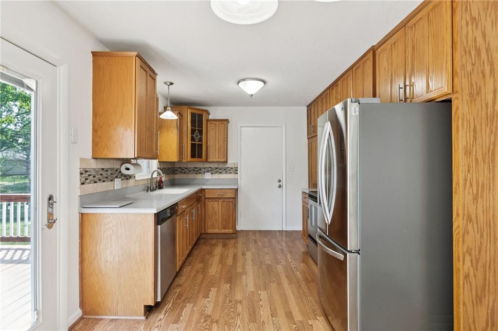 Welcome to 7515 N Wayne Ave! Freshly painted and full of natural light, this 3-bedroom, 2.5-bath ranch in the heart of Gladstone offers a warm and inviting place to call home. The main level features a bright living room that flows into the kitchen, complete with classic wood cabinetry, and stainless steel appliances—perfect for everyday living and gathering with friends. The primary suite includes its own private half bath, while two additional bedrooms provide space for family, guests, or a home office. The finished walkout basement expands your options with a large rec room and an additional full bath—great for movie nights, hobbies, or entertaining. Out back, the fenced yard is shaded by mature trees, offering both privacy and plenty of room to play. Spend summer evenings grilling on the spacious deck or relaxing on the patio below. A two-car garage adds convenience, while the Gladstone location means no Kansas City earnings tax—just easy access to parks, schools, shopping, and highways. This home blends comfort, updates, and lifestyle—ready for you to move in and enjoy!
