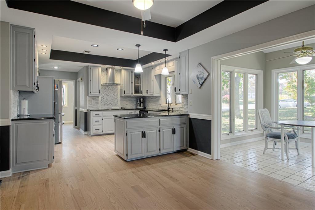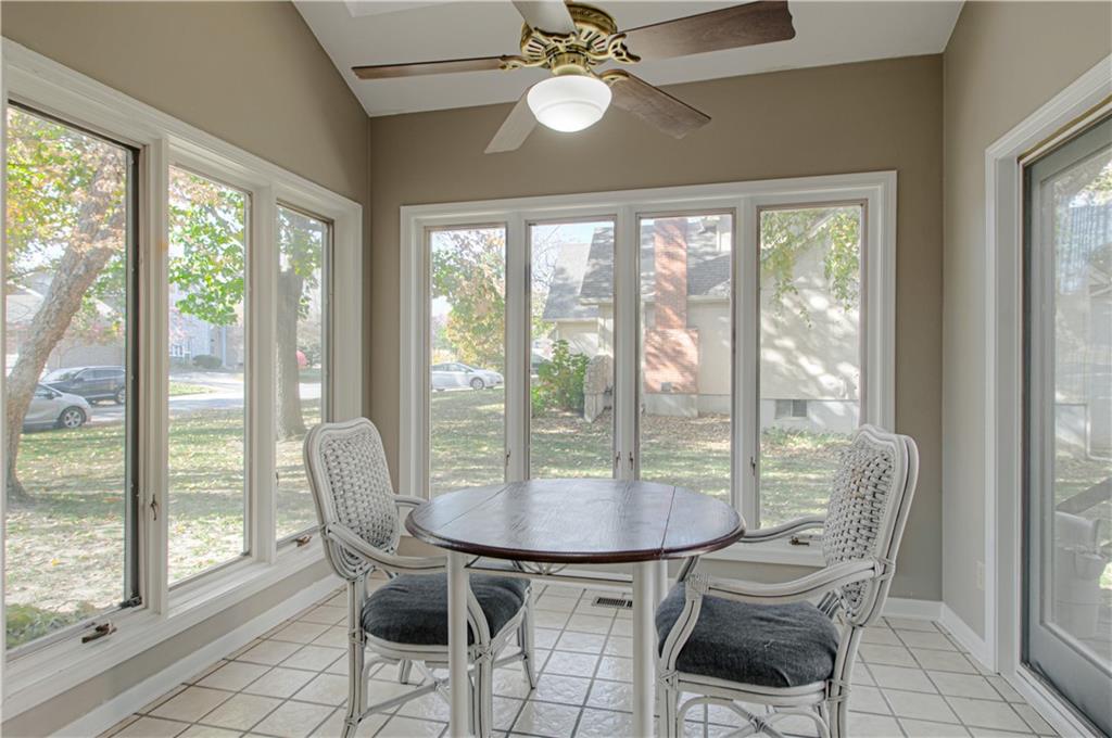 Look no further for a beautiful home with space, great location, updates and more! This fantastic 4 bedroom 5 bathroom 2-Story home provides NEW kitchen wood floors, A/C and 60 year high impact roof are less than 6 years old, 1 year old Water heater and additionally, all HVAC has already been serviced and is ready to go for the cold months ahead. Aside from the big items giving you peace of mind, this home offers a luxurious owners suite complete with fireplace, THREE walk-in closets and large double vanity with generous granite counter space. Three lovely sized bedrooms share the upstairs, one with new carpet and another with a walk-in closet and full bathroom making it a potential SECOND OWNERS SUITE-keeping options open for different needs. The main floor is a buyers dream! Large updated kitchen with granite counter tops, stainless steel appliances, eat-in kitchen space in addition to formal dining space, laundry room just steps away and gorgeous BRAND NEW wood floors. Have your coffee in the dreamy Sunroom also located next to the kitchen with access to the deck and backyard. TWO living area options, the larger complete with fireplace and windows looking out to the backyard and the other that could be a large office, playroom or second living area. Without stopping, head to the basement and prepare to be shocked at the amount of space for activities! Cove/Indirect lighting and fireplace create a warm, welcoming feeling throughout the space. In addition to this already amazing home, the carpets have been steam cleaned and home has been professionally deep cleaned to provide buyer peace of mind and ease of moving right in. HOA Amenities include, Swimming pool, Tennis courts and trash pickup. This home sits on a corner lot at the edge of a cul-de-sac located close to library, shopping, trails, NO KC 1% TAX and more just to add a cherry on top. Schedule a showing today, this home is ready to make memories in!