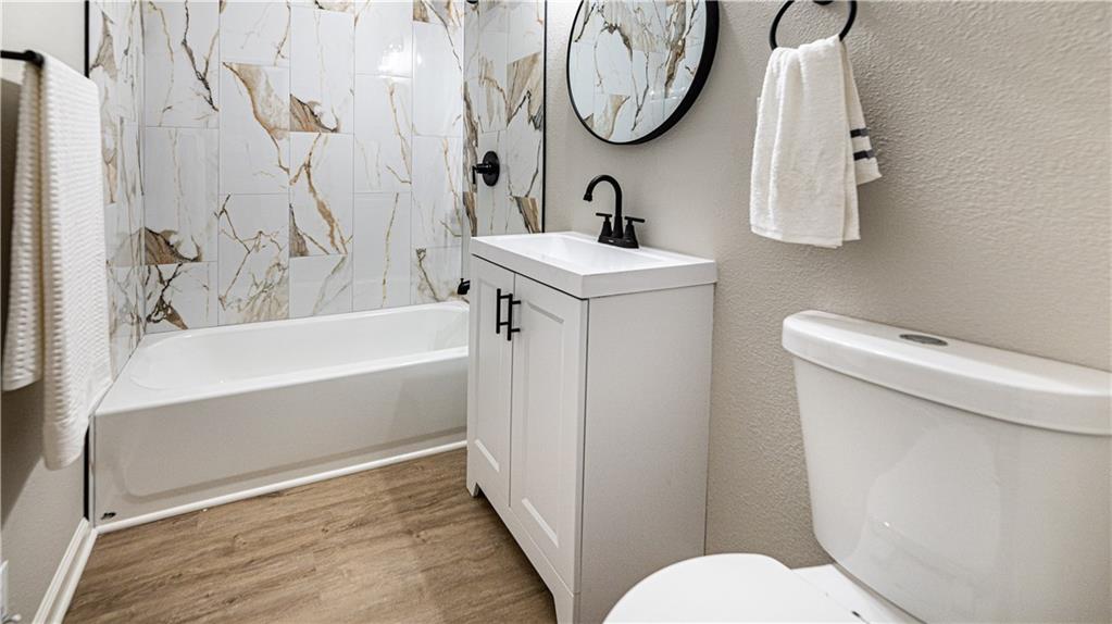 Bathrooms: Hall bath with tub/shower and LVP; master bath with tile shower.