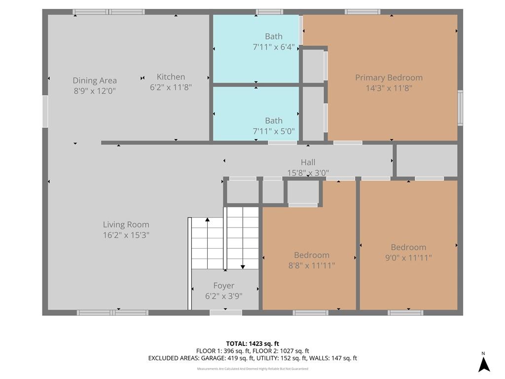 All three bedrooms are located on the same level, just steps from the full bathroom. A convenient half bath adds extra function for guests. Outside, the spacious backyard is perfect for relaxing evenings, weekend barbecues, or room to play.