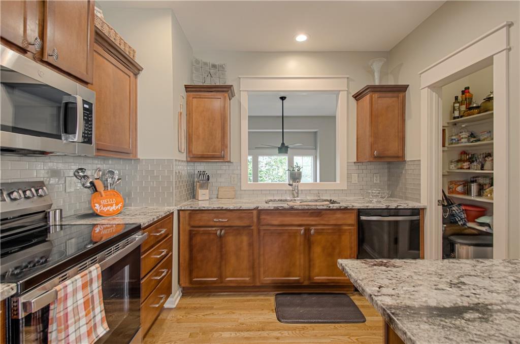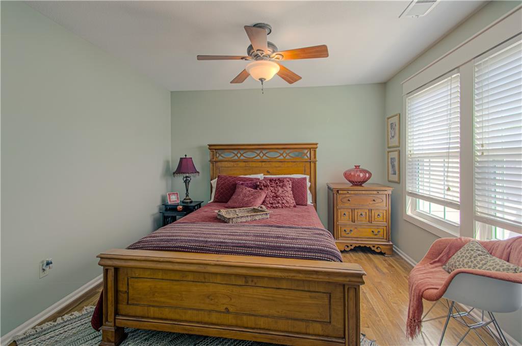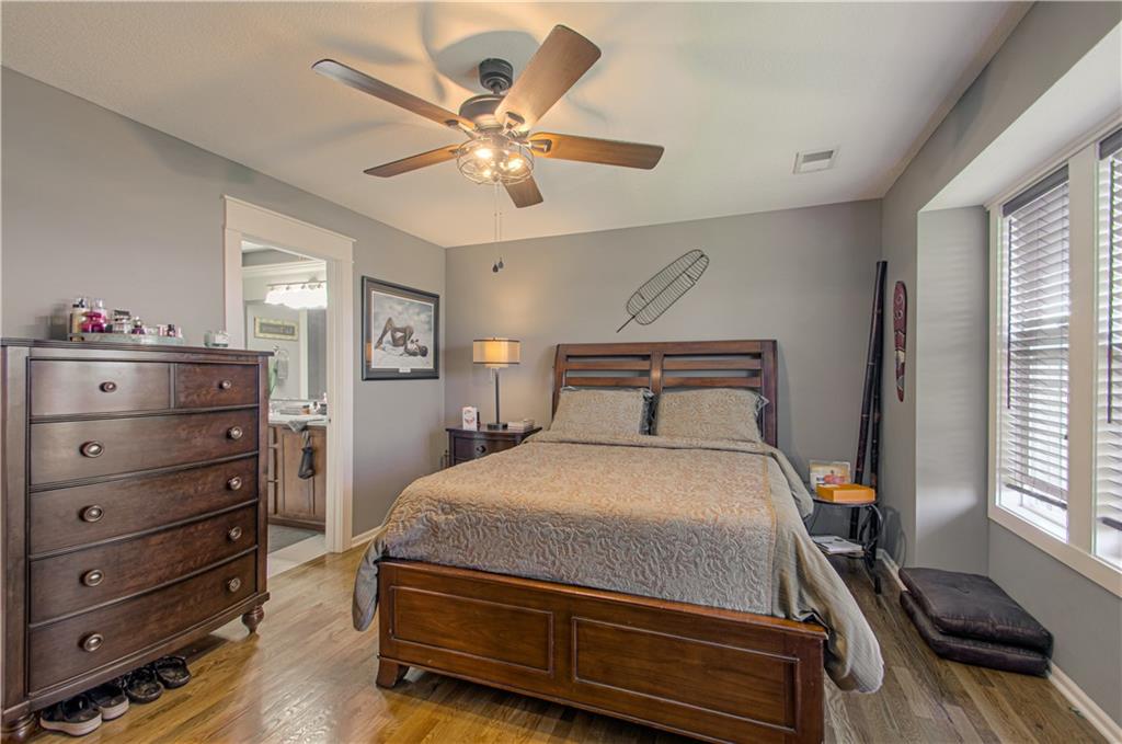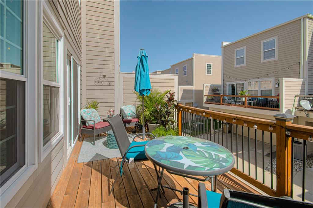 Welcome to this beautifully maintained townhouse in sought-after Northgate Village, Kansas City, MO! This inviting home features two spacious bedrooms, each with its own full bath—perfect for privacy and comfort. The main level boasts an updated half bath with a quartz countertop and a custom door, adding a touch of elegance. The kitchen is a chef’s delight with granite countertops, a stylish glass backsplash, stainless steel appliances, and a custom pantry door. Gorgeous hardwood floors flow throughout, complemented by thermal windows that bring in natural light. Step out onto the deck off the main floor—ideal for morning coffee or evening gatherings. Updated lighting and ceiling fans.