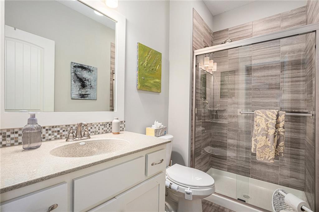 Extremely well kept home with lots of NEW! An open kitchen adjoins dining & great room with fireplace; the primary bedroom with NEW flooring is on the main level, as well as an additional bedroom/office. The main bath & closet connect to the laundry room for easy access. 2 more bedrooms on 2nd floor with a Jack & Jill bathroom that includes a tub. A finished recreation room is ready for you to turn into a haven of your own (plenty of room to use as studio, work-out room, library, play room etc). NEW Roof, high-end quiet Dishwasher, Front & Back Doors + Storm doors, Brick steps to patio, In-ground sprinkler system