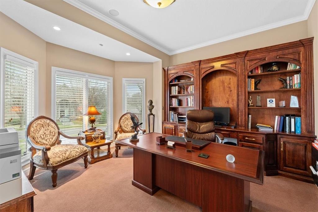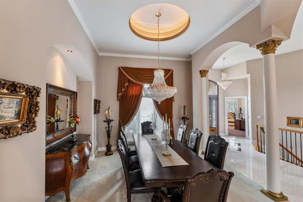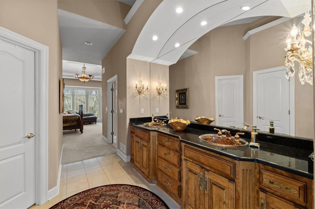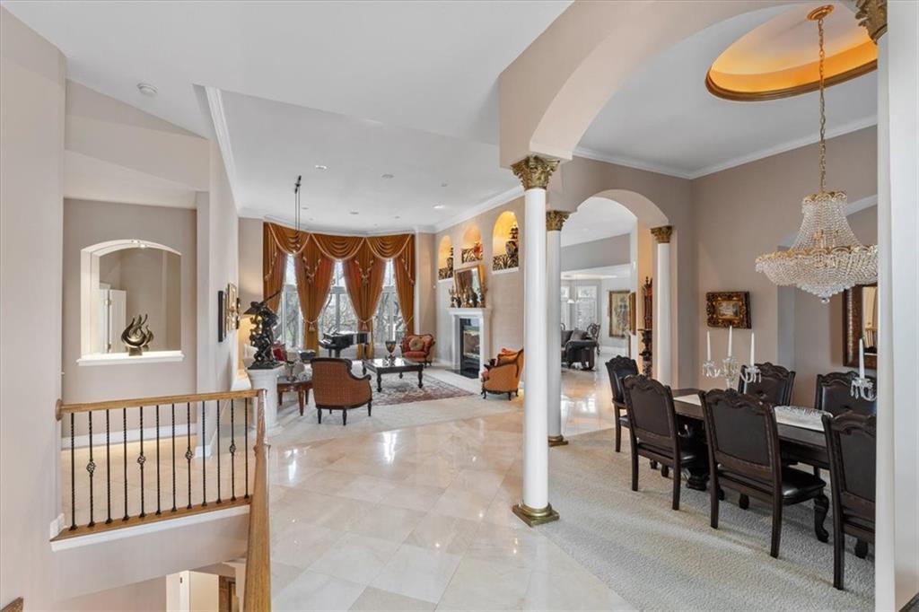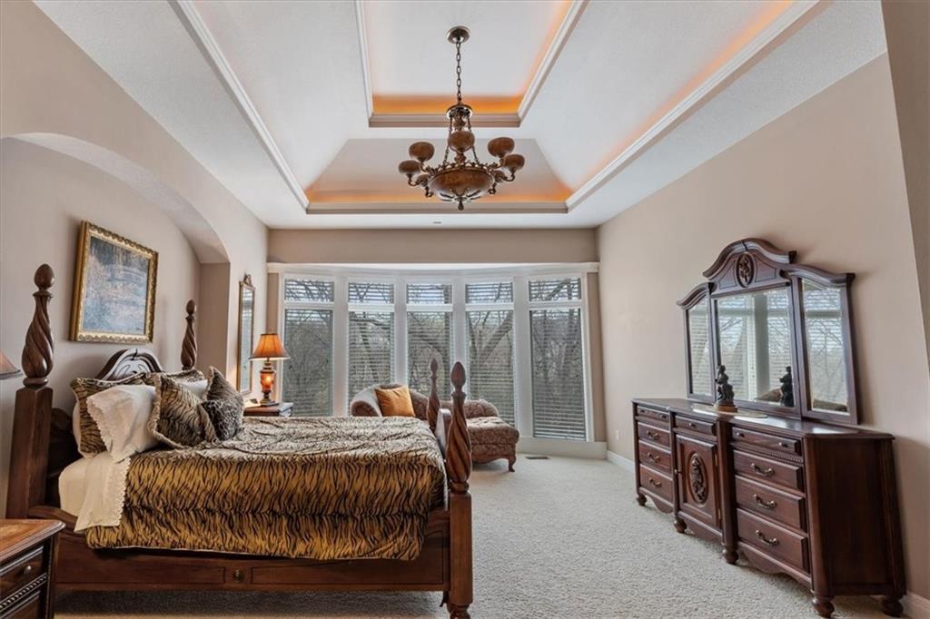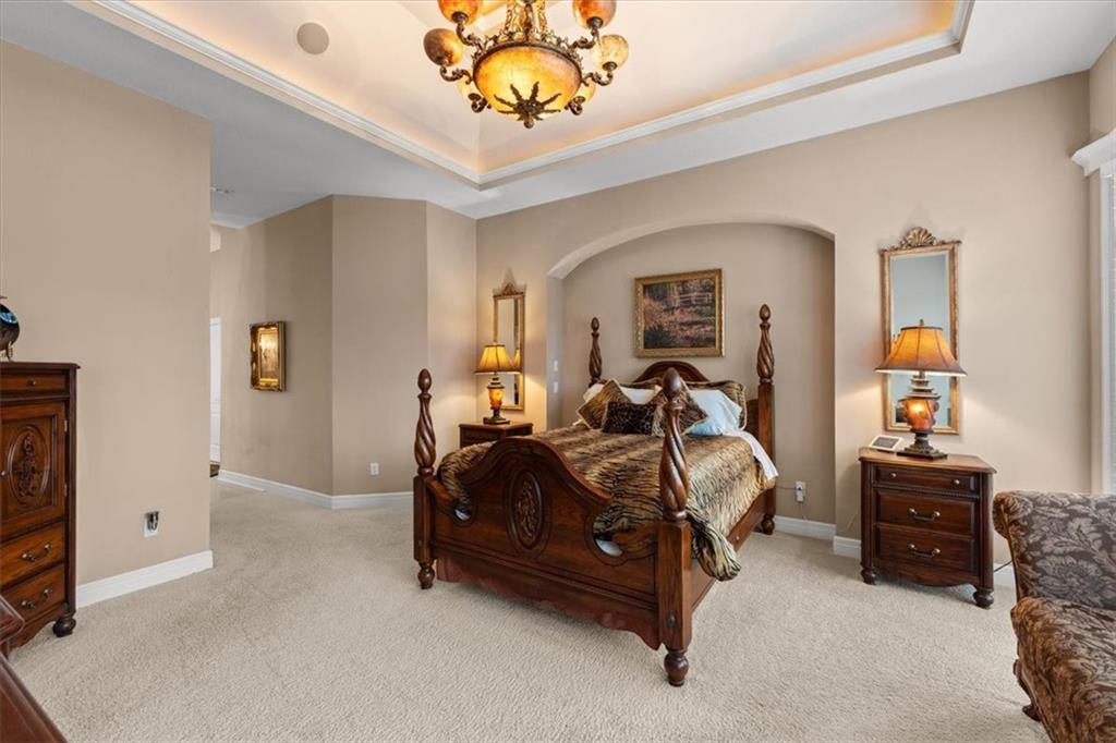 Welcome to this refined retreat on picturesque North Hickory Lane, nestled in the prestigious and final phase of Briarcliff West. This 4-bedroom, 3.5-bath residence offers over 4,500 square feet of thoughtfully designed living space, blending privacy, sophistication, and convenience with easy access to major highways and the airport. Step inside to soaring 12- and 14-foot vaulted ceilings on the main level and 10-foot ceilings throughout the walk-out lower level. Recent upgrades include stunning Taj Mahal Quartzite countertops in the gourmet kitchen, paired with tall birch cabinetry, a walk-in pantry, and a vaulted hexagon-shaped breakfast area. Newer appliances—including refrigerator and dishwasher—make daily living and entertaining a breeze. The luxurious primary suite features floor-to-ceiling windows, plush carpet, and a spa-like bath with tall cabinetry, soaker tub, oversized walk-in shower, and a generous walk-in closet. The expansive lower level is an entertainer’s dream with a two-sided gas fireplace, full wet bar with sink and fridge, wine storage, cedar closet, workshop, and ample storage. Three secondary bedrooms—each with walk-in closets, including one with an en suite—offer flexibility and comfort. Throughout the home, you’ll find custom marble floors, Anderson 400 series casement windows, crystal chandeliers, detailed millwork, wide trim, and vaulted ceilings with modern lighting. Additional highlights include a main-floor office/library with built-ins, a custom imported vanity in the powder room, main floor laundry, and newer HVAC, humidifier, and water heater. A top-tier security system includes three cameras and a Ring doorbell. Outside, enjoy the tiered backyard that backs to mature trees and scenic nature trails. Car enthusiasts will appreciate the oversized 3-car garage with 11-foot ceilings. Just minutes from the charm and amenities of Briarcliff Village—this exceptional home is not to be missed.