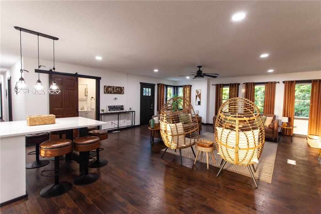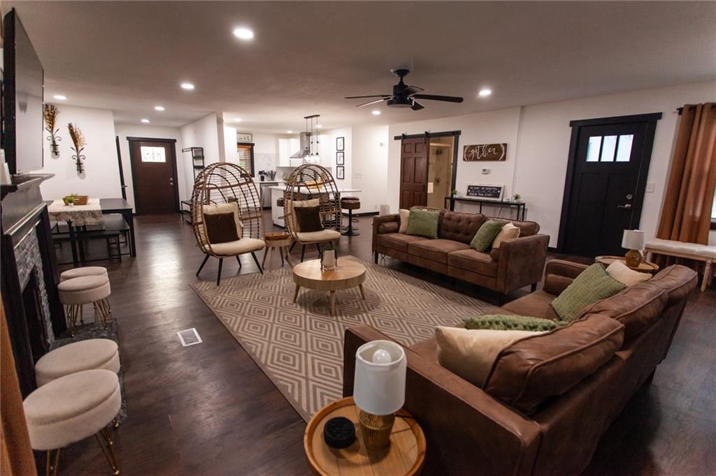 Experience the best of both worlds with this unique property located within city limits! Nearly 3 acres situated on a secluded corner lot just minutes from downtown Kansas City, this open-concept home offers the tranquility of suburban living combined with the convenience of city life.