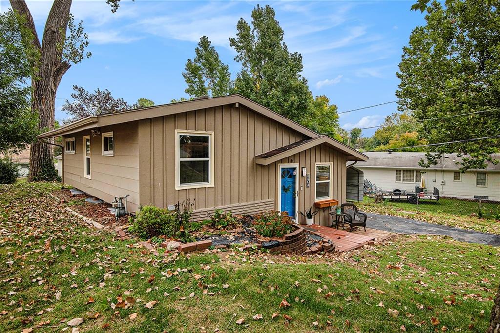 Cozy mid-century cottage in Holiday Hills! Bright and open floorplan on the main level with new paint and carpet. Upstairs, 2 bedrooms (converted from 3) and a full bathroom. The finished lower level could be perfect for a rec/room or theater. Attached garage and car port. Fenced-in backyard. Great curb appeal and great location in the North Kansas City School district, close to shopping and restaurants.