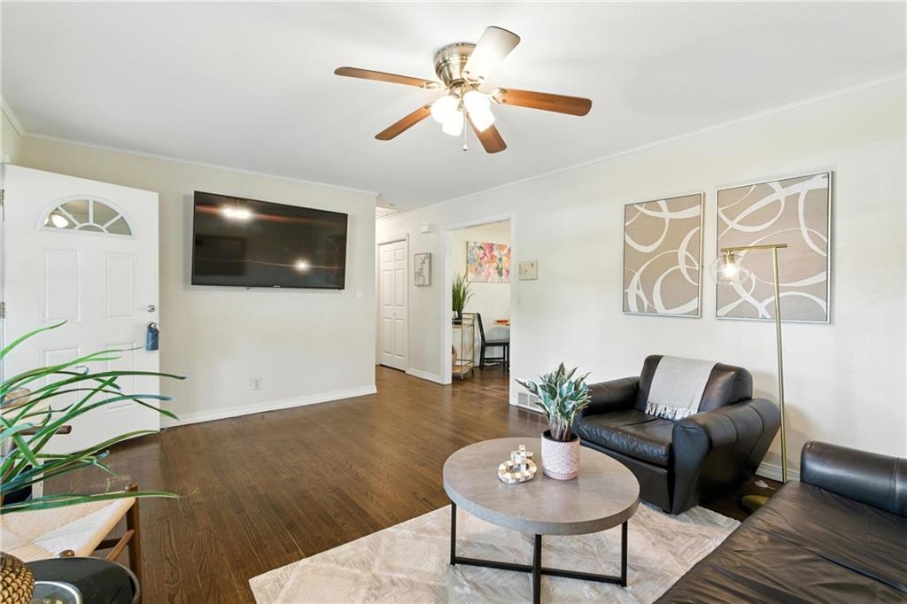 Opportunity is Yours – Buyer Opted Out. PRICED TO SELL!!! Thoughtfully updated and nestled on a quiet tree lined street, this beautifully maintained 3 bedroom ranch blends peaceful suburban living with unbeatable convenience—just minutes from local shops, dining, and effortless highway access. It’s the perfect place to begin your next chapter. Step inside and you’ll immediately feel the warmth and care this home has received. Hardwood floors shine with NEWER windows, flowing throughout the living room, ALL MAIN LEVEL BEDROOMS, and a dedicated dining room, creating a cohesive and inviting space. The updated kitchen features newer countertops and plenty of cabinetry, making both cooking and entertaining a joy. Storage is no concern, with three oversized hallway closets on the main level to meet all your storage needs. The true showstopper of this property lies just beyond the back door. Step outside to a backyard oasis that feels like your own private botanical garden. Meticulously maintained flower beds, vibrant seasonal blooms, and a charming greenhouse set the stage for gardening dreams and peaceful evenings under the covered patio. The expansive, fully fenced yard offers both beauty and privacy, creating an ideal setting for outdoor entertaining or quiet relaxation. The finished lower level expands your living space with a NONCONFORMING 4th BEDROOM, a versatile bonus area perfect for a home office, gym, or playroom, and abundant storage options throughout. With a 1 YEAR OLD ROOF, NEW GUTTERS, AND NEWER A/C UNIT, this home delivers not only charm but also added peace of mind and added efficiency.