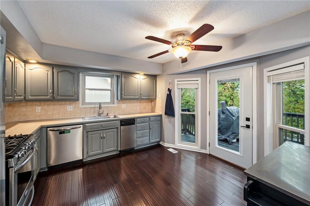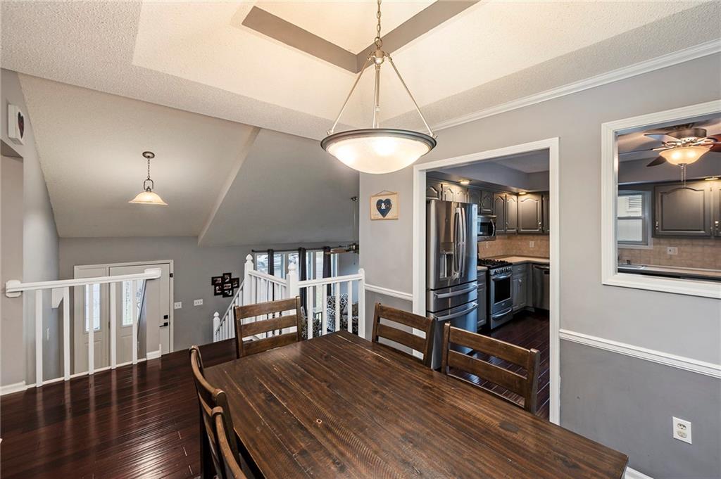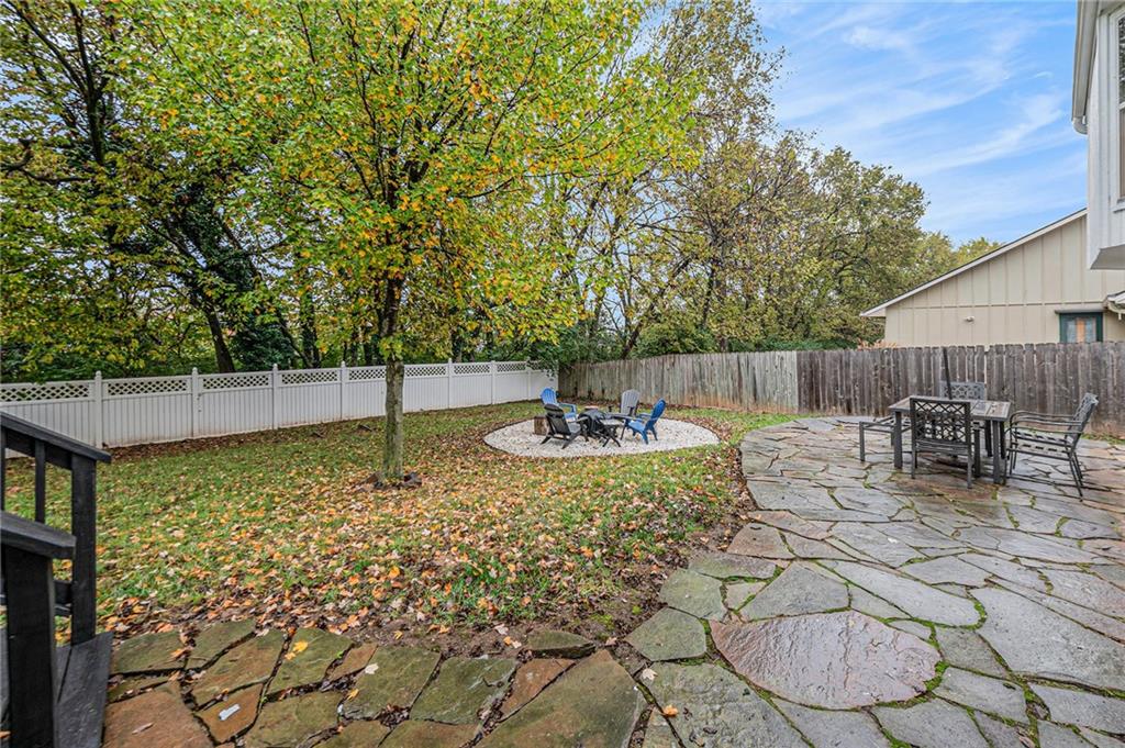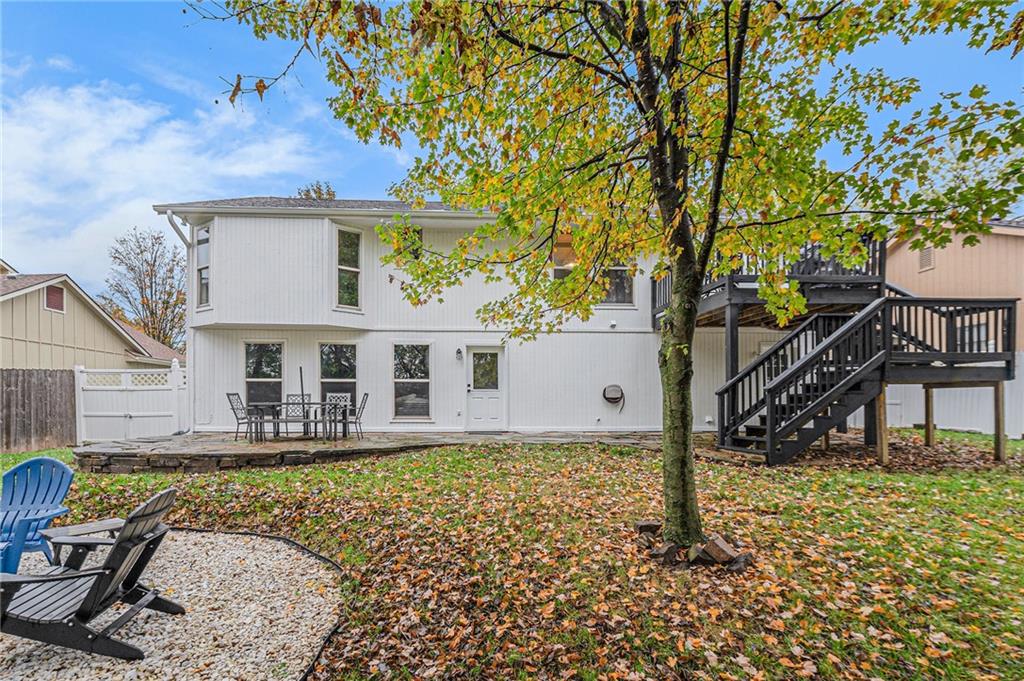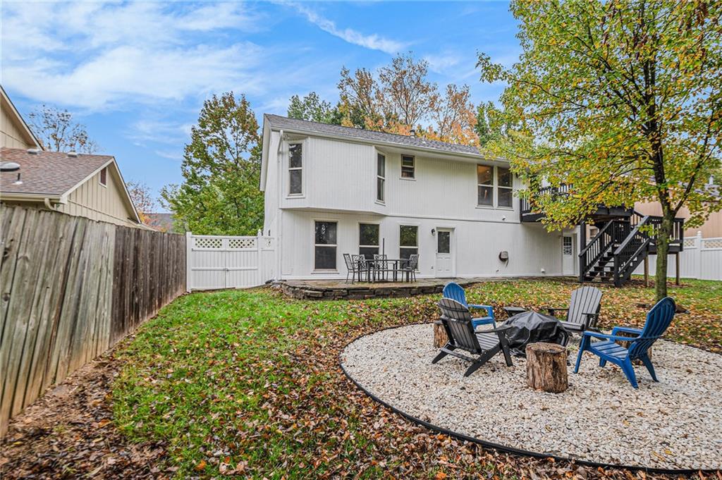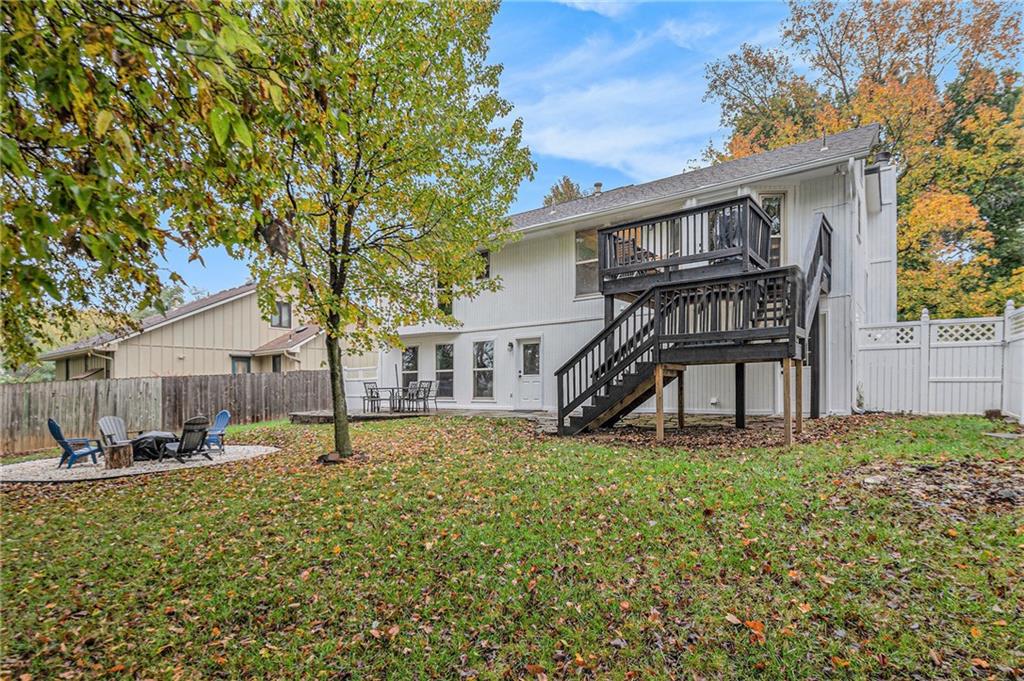 Welcome home to this beautifully maintained front-to-back split nestled in a quiet, friendly neighborhood with mature trees, just a short walk from Happy Rock Park and the new 5-acre Happy Rock Park Dog Park. Fresh exterior paint, new windows, gutter guards, and a 5-year-old HVAC system make this home move-in ready for its next family to love. Step inside to a formal living room filled with natural light, vaulted ceilings, and a cozy fireplace. On the second level, you’ll find a formal dining room with hardwood floors and a well-equipped kitchen featuring stainless steel appliances, a gas stove, gray cabinets, and hardwood floors — and yes, all appliances stay! This home offers 3 generous bedrooms above grade and a 4th bedroom (or office) in the lower level. The lower level also includes a spacious rec room with a wet bar, walk-out access, half bath, and entry to a sub-basement with laundry (washer and dryer stay!). Outside, enjoy the fenced backyard with white vinyl fencing, a freshly stained deck, a beautiful stone patio, and a cozy firepit area backing to mature trees for added privacy.