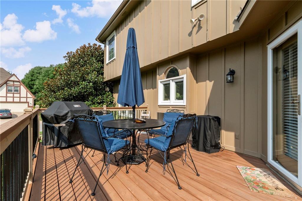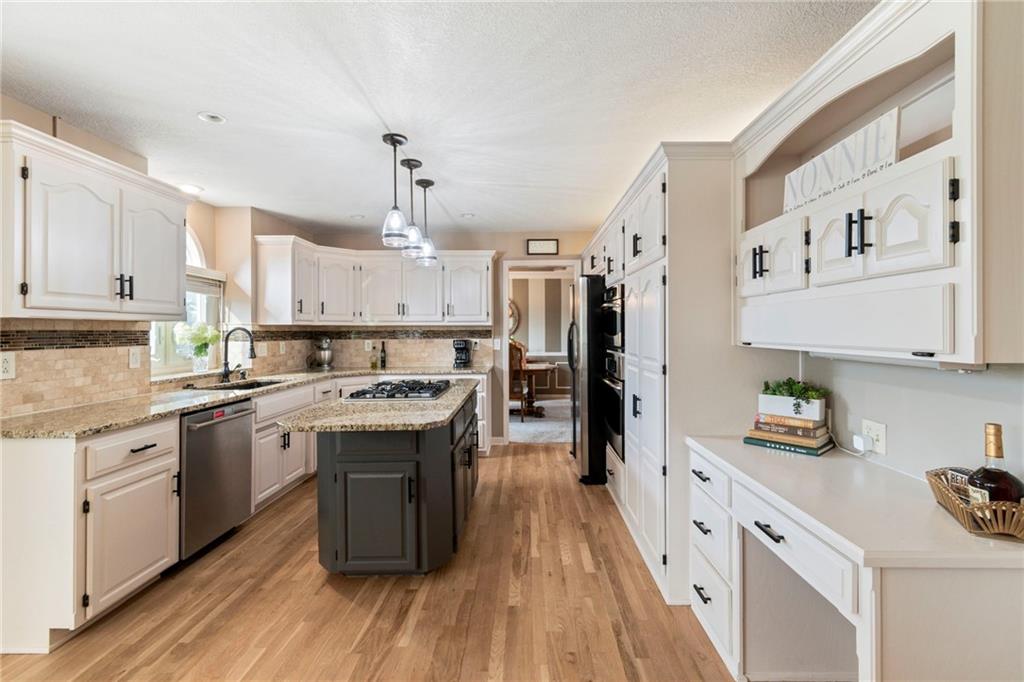 **NEW PRICE**Welcome to this beautifully maintained 1-owner home nestled in sought-after Carriage Hill Estates-Kansas City, MO address. This 4-bedroom, 3.1-bath, 2-car garage home offers timeless appeal and thoughtful updates throughout its years of loving ownership. The brick façade and extended 3-car driveway add to the curb appeal, while the spacious corner lot on a quiet cul-de-sac offers privacy and room to roam. Step inside to a warm and inviting living room featuring a wood-burning fireplace, perfect for cozy evenings. The formal dining room flows seamlessly into the remodeled eat-in kitchen, complete with refinished natural hardwood floors, large island, new granite countertops, tile backsplash, new dishwasher, gas cooktop, convection oven, and built-in convection microwave—ideal for both everyday living and entertaining. Upstairs, the spacious primary suite boasts built-ins and a fully updated en-suite bathroom with new flooring, jetted tub, and a beautifully tiled shower. Two additional bedrooms share a hall bath with a double vanity and tiled shower/tub combo, and the fourth bedroom offers a private full bath and walk-in closet—great for guests, teens, or in-laws. The finished full basement features a wet bar and a large family room, perfect for movie nights or game days. Step outside to enjoy the huge deck, ideal for grilling, relaxing, or entertaining while overlooking your sprinkler-equipped yard. With a newer roof, newer thermal pain windows, central vacuum system, well-maintained mechanicals, and access to the neighborhood pool, tennis courts, and pickleball, this home offers comfort, convenience, and community. Don’t miss your chance to own this exceptionally cared-for gem—ready for its next chapter!