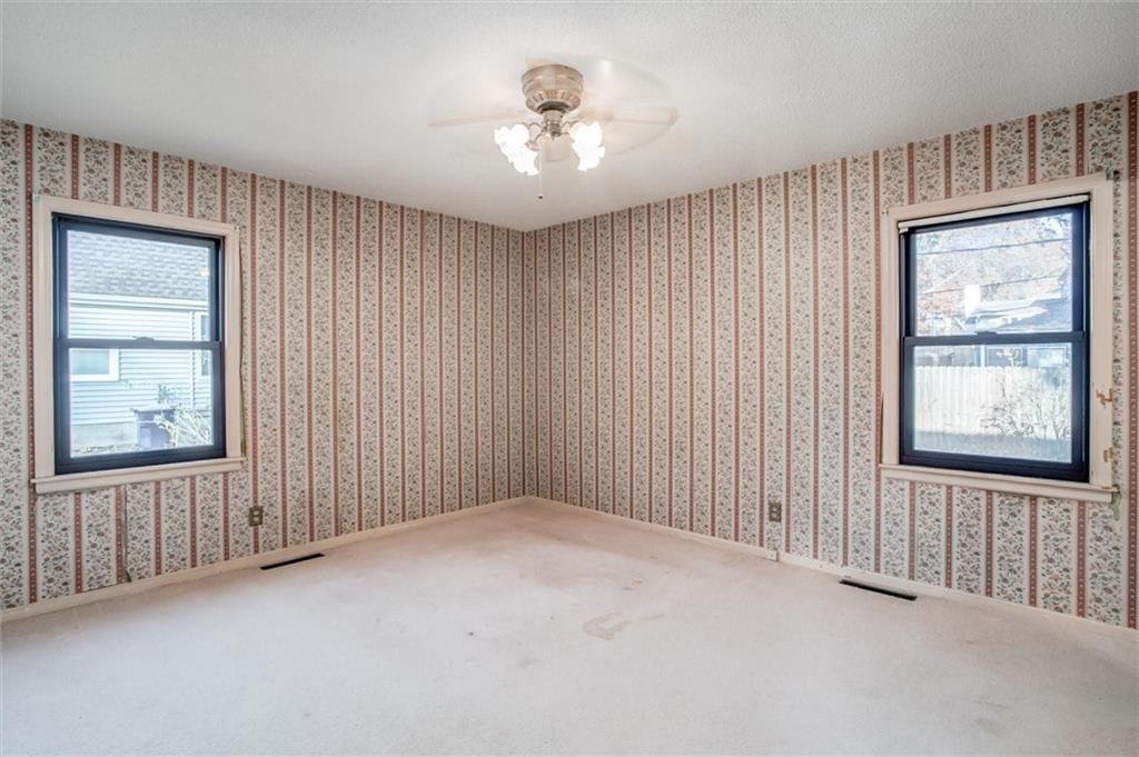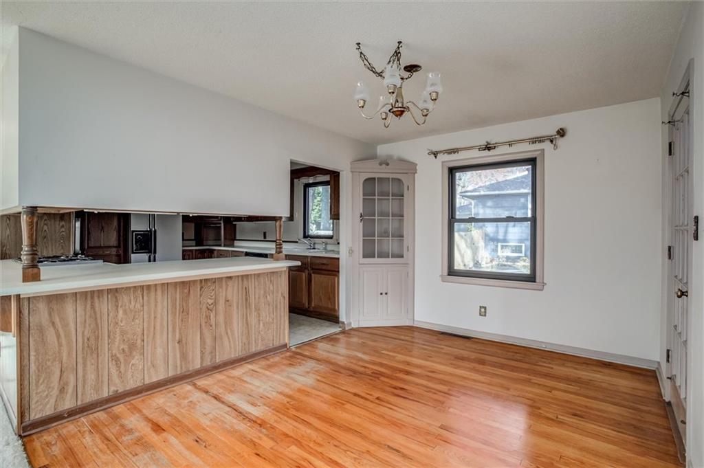 The main level features spacious living areas and a primary bedroom with carpet covering beautiful original hardwood floors just waiting to be revealed. The layout flows easily from the living room into the dining area and kitchen, offering a functional space ready for your personal touch.
