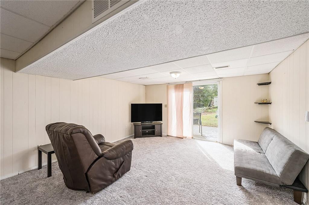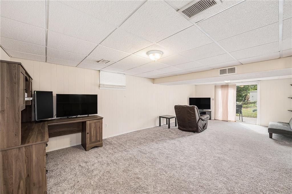 The finished walkout basement features a large rec room with a wet bar, full bath, and direct access to the fenced backyard—ideal for gatherings, game nights, or cozy fall evenings by the firepit. A generous unfinished area provides plenty of storage or workspace.