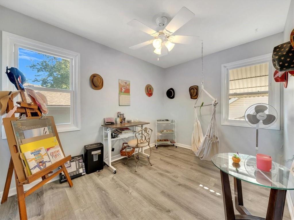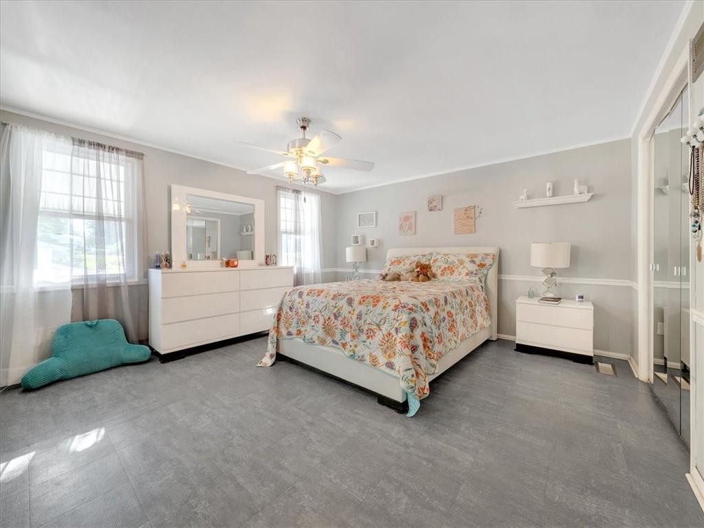 Schools are right across the street—ideal for a family. This area has parks and lots of play areas for the children and pets. Inside, discover a main-level bedroom and bath, plus spacious second-floor bedrooms with versatility of two master bedrooms(one without steps) The finished basement includes a recreation/game room and half bath, and there’s even an apartment-style bedroom with half bath in the garage attic—perfect for a teen, renter, or extended family member. A corner lot showcases the HUGE detached 2-car garage/shop, large concrete area for play or a basketball goal, has its own air compressor, 50-amp RV plug-in, and extra storage shed. A breezeway connects house and garage for easy flow. Enjoy newer kitchen appliances, an extra dining area or sunroom, and abundant storage throughout. This property offers space, flexibility, and parking for every lifestyle need—don’t miss this one! Home sits on corner lot—look for the HUGE detached garage/shop across from the school.