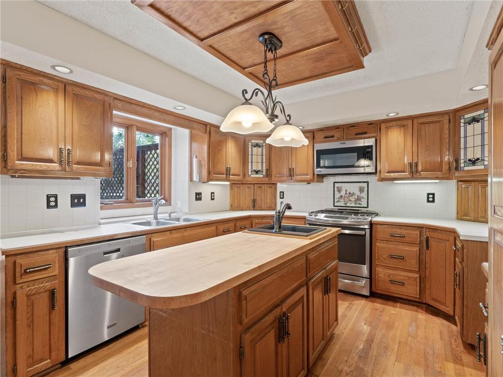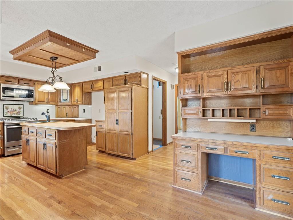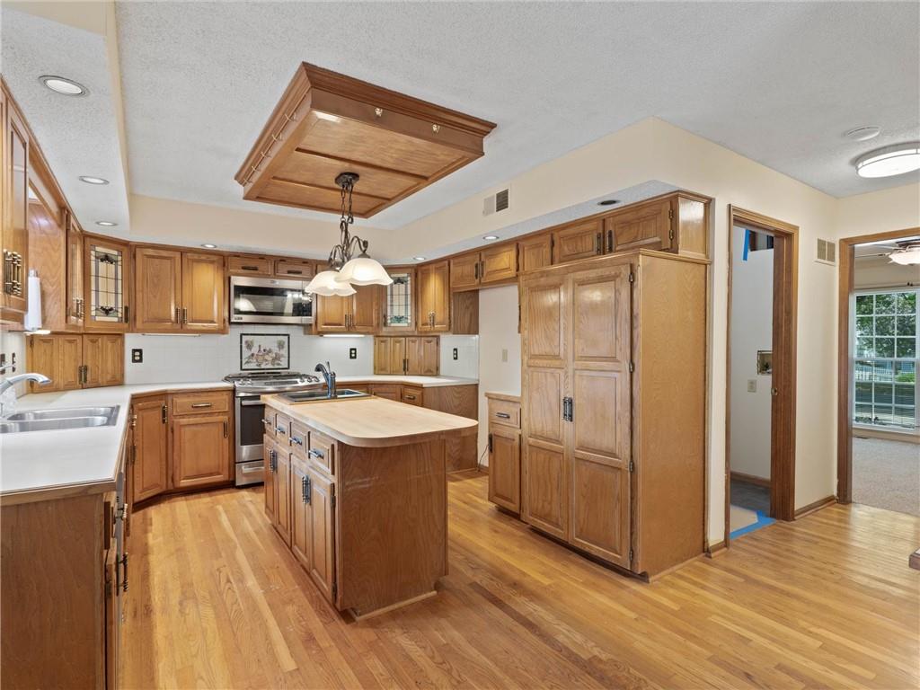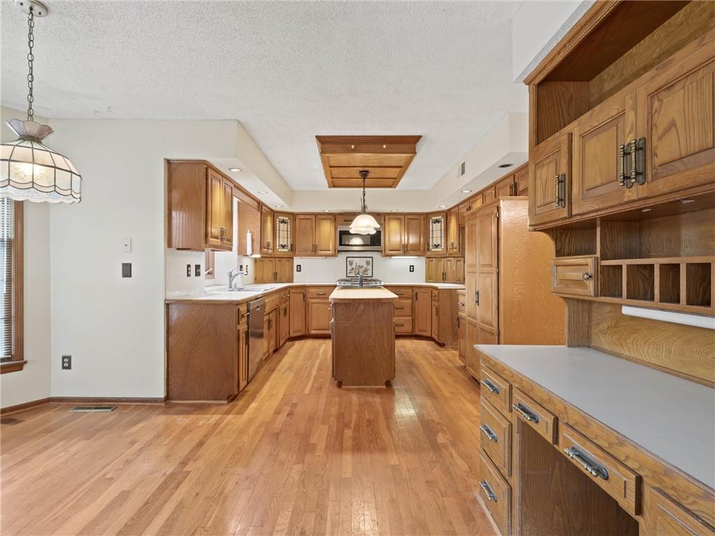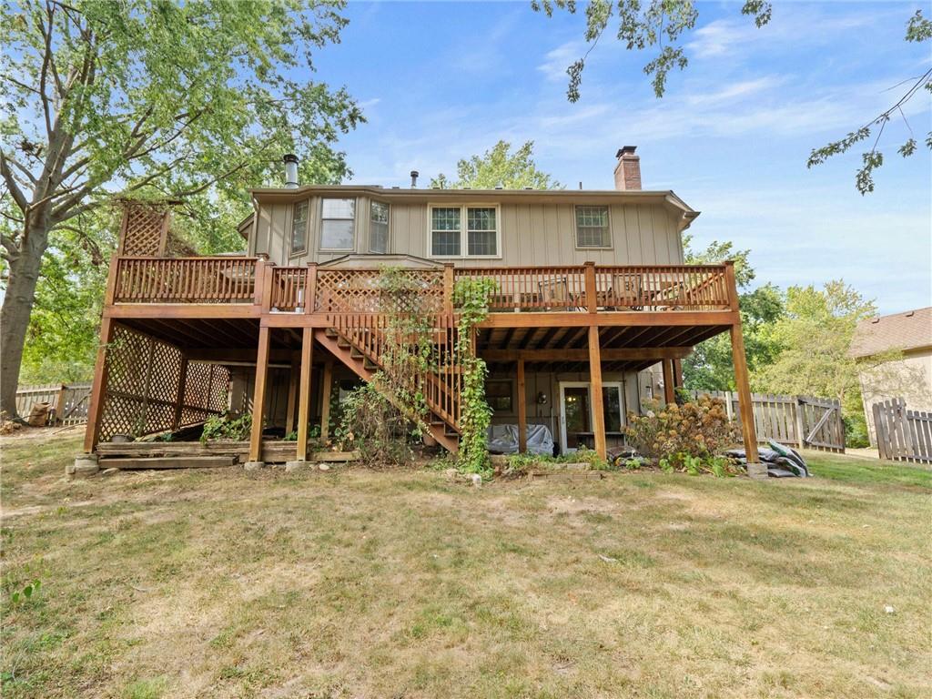 Need more space? This one is for you! More than 3,500 sf of livable space with a walkout basement on a .4 acre lot! The potential in this home is endless – the main floor features a den/office, formal dining room, spacious living area with fireplace and built-ins, half-bath, and the huge kitchen with breakfast area, island, and pantry. Upstairs, there are two secondary bedrooms, a full bathroom and the incredible primary suite complete with a sitting area with fireplace, dual vanities, separate jetted tub and shower, and massive walk-in closet ready to turn into your dream dressing room. There’s an additional entry through this closet to the 4th bedroom making it ideal for another office, nursery, home gym, or countless other possibilities. The walkout basement has a large rec space with another fireplace, a non-conforming 5th bedroom, full bathroom, storm room, and ample storage and workspace. All front windows were replaced in 2023 and include transferable warranty. New decking in 2024. Dishwasher replaced in 2020. New microwave in 2024. New carpet in basement and NE bedroom. New vinyl flooring in the basement bathroom and in the mud room off the garage. New fencing in 2023. Fantastic neighborhood with Brookhill Park right around the corner and the community pool and tennis courts minutes away. Just 15 minutes to downtown KC, close to great restaurants, stores, services, and easy access to highways – this location can’t be beat!