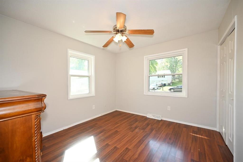 Darling ranch with new white kitchen and granite countertops! Fresh interior paint! 3 bedrooms and full bath on main floor and finished lower level with walk out. 2 non conforming bedrooms in lower level plus large rec room. Large fenced backyard that backs to trees! Brand new roof and gutters August 2025.