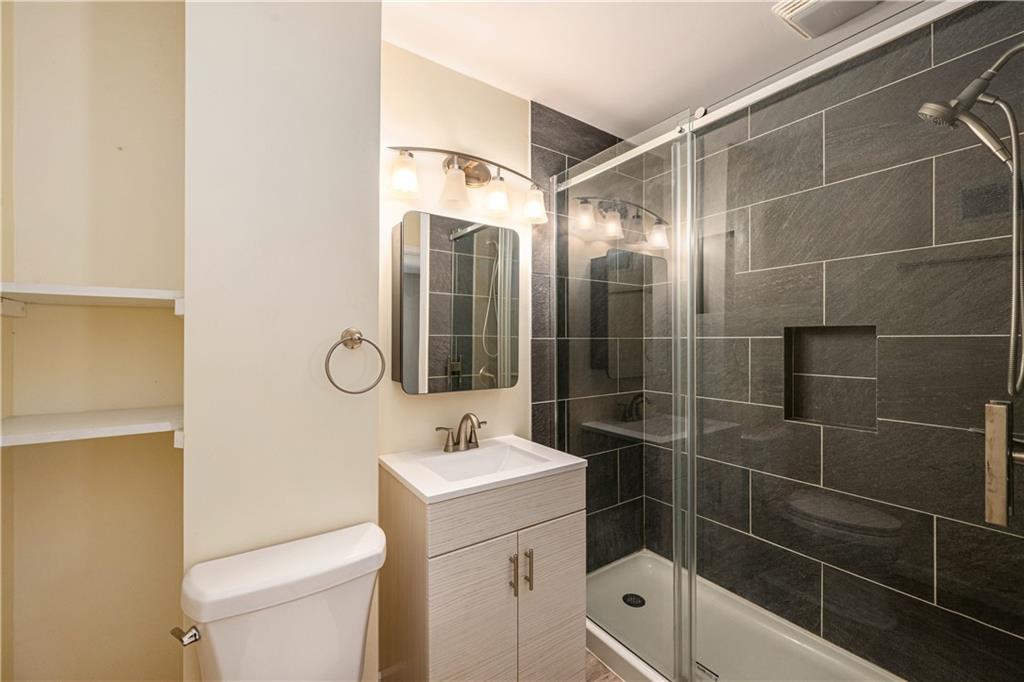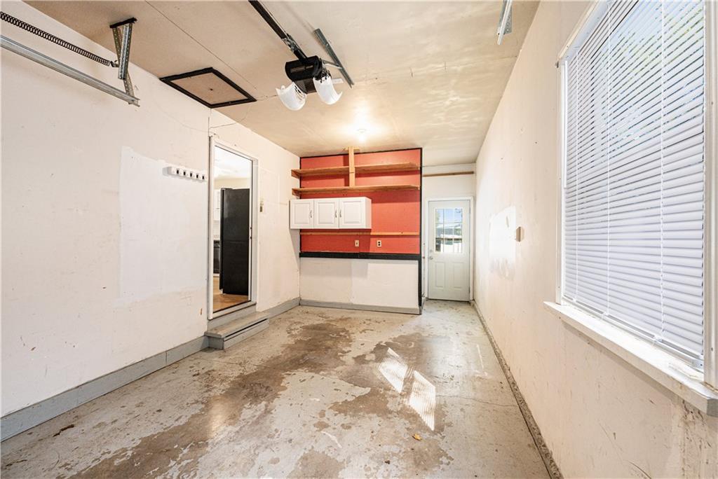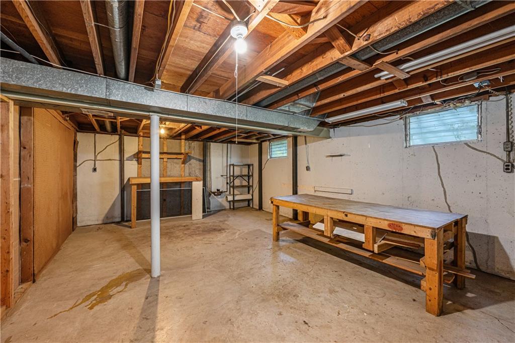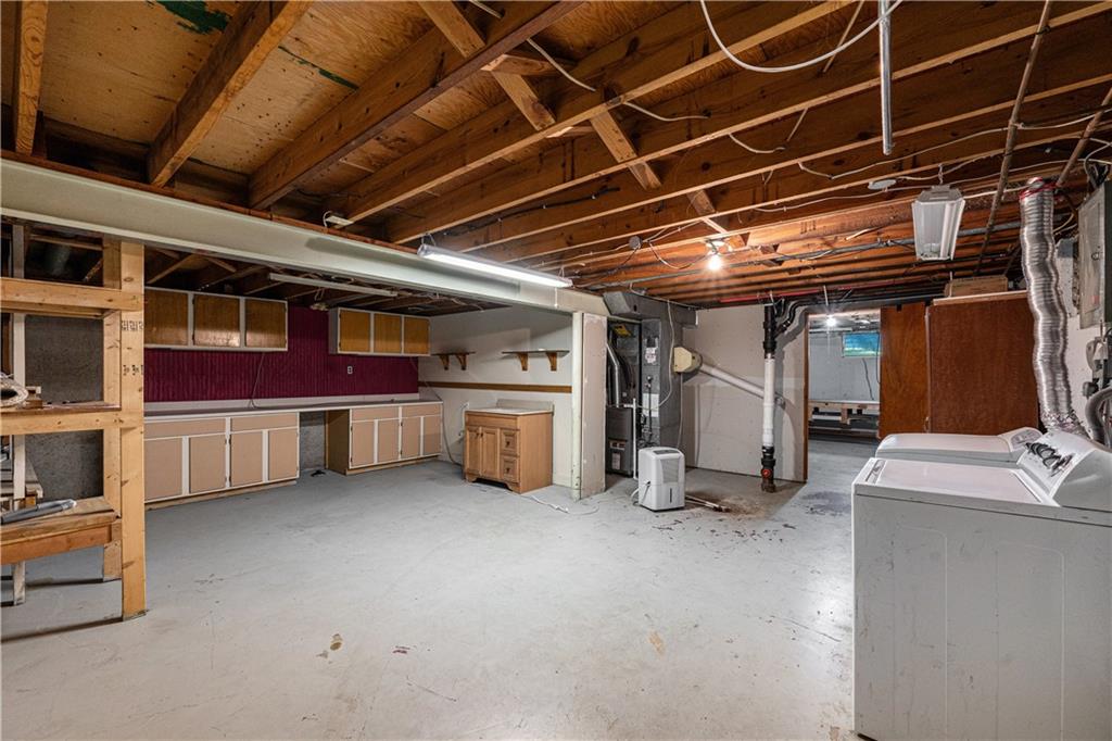 A full basement offers laundry, storage, and workspace potential. The attached garage adds convenience with extra shelving and direct access to the home.