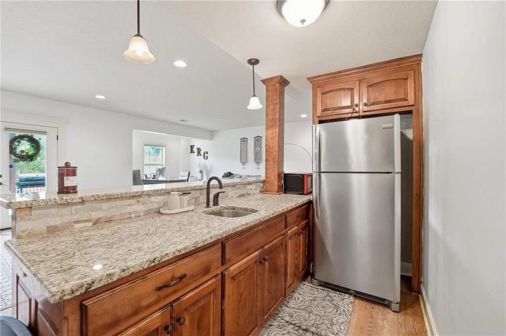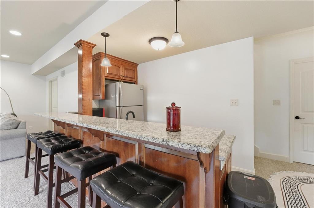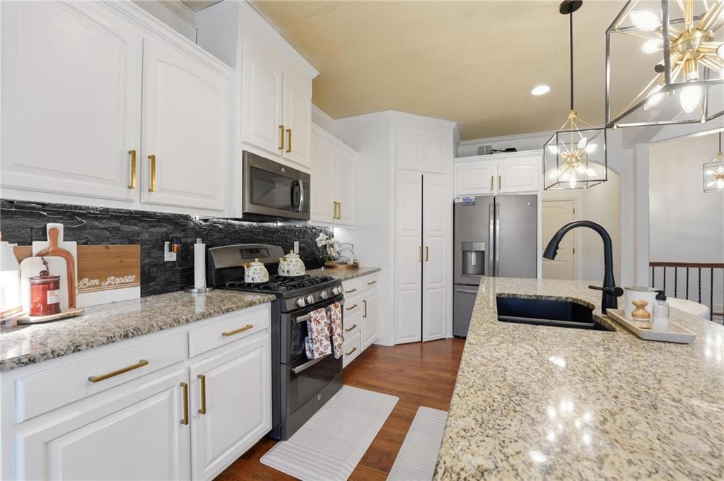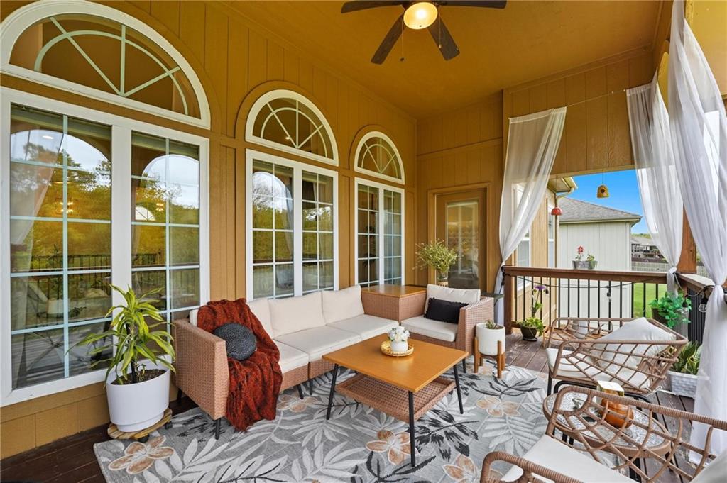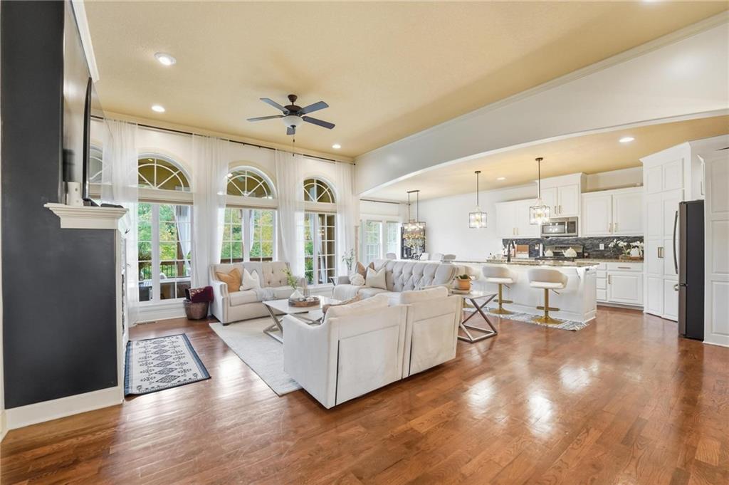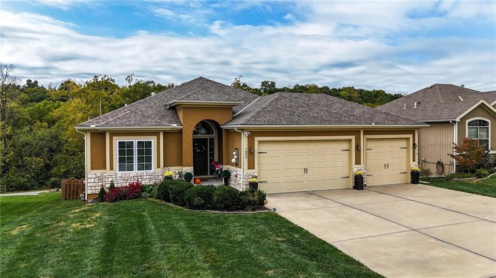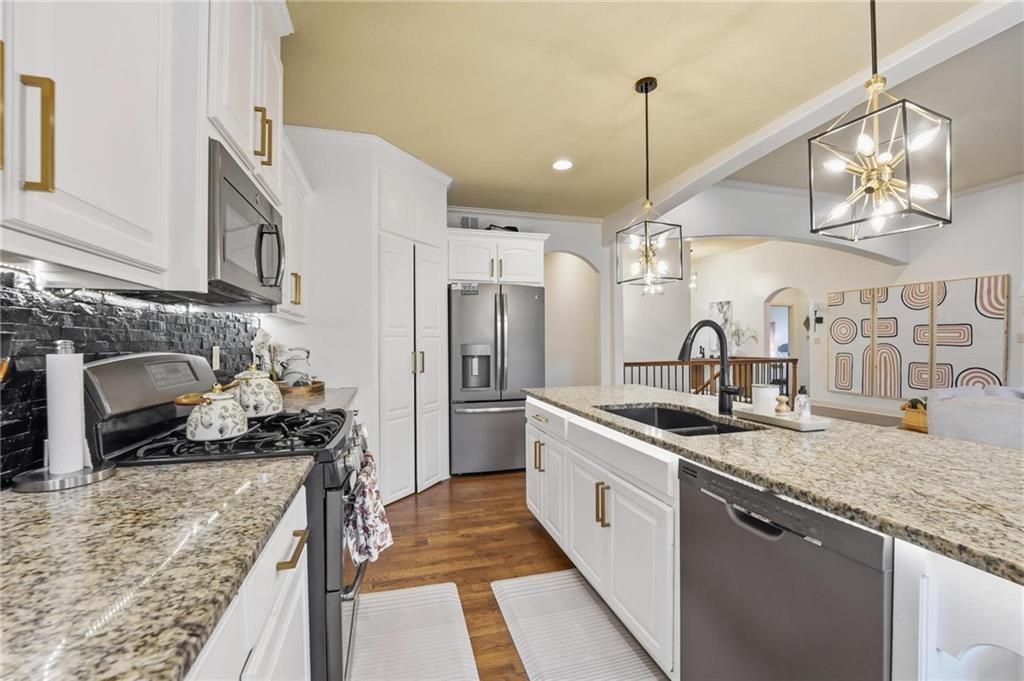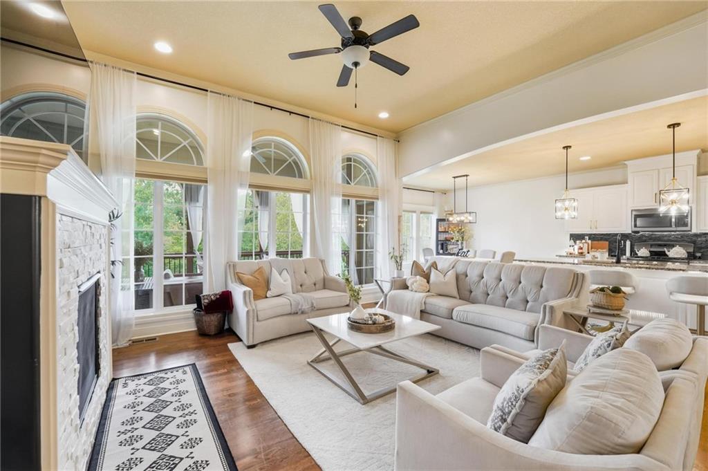 Beautiful 4-bedroom, 3-bathroom home with 3,322 square feet in the highly desirable Northland area of Kansas City, MO. Step inside to find hardwood floors throughout the main level, complementing an open-concept layout designed for both everyday living and entertaining. The spacious living room features a cozy fireplace and plenty of natural light, seamlessly connecting to the kitchen with granite countertops, custom cabinetry, stainless steel appliances, and a gas range. Enjoy morning coffee or evening sunsets from the covered deck overlooking a private, fenced backyard with a tree-lined backdrop. The primary suite offers a relaxing retreat with a spa-like bath featuring dual vanities, a tiled shower, and a soaking tub. The lower level expands your living space with a full wet bar, large family room, guest bedroom, and ample storage. Additional highlights include a 3-car garage, well-manicured landscaping, and a convenient location close to shopping, dining, and top-rated schools. This home combines comfort, functionality, and style—all in one perfect package.