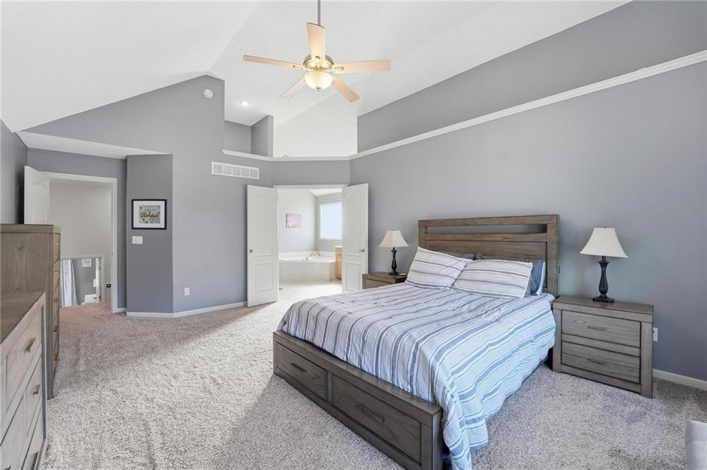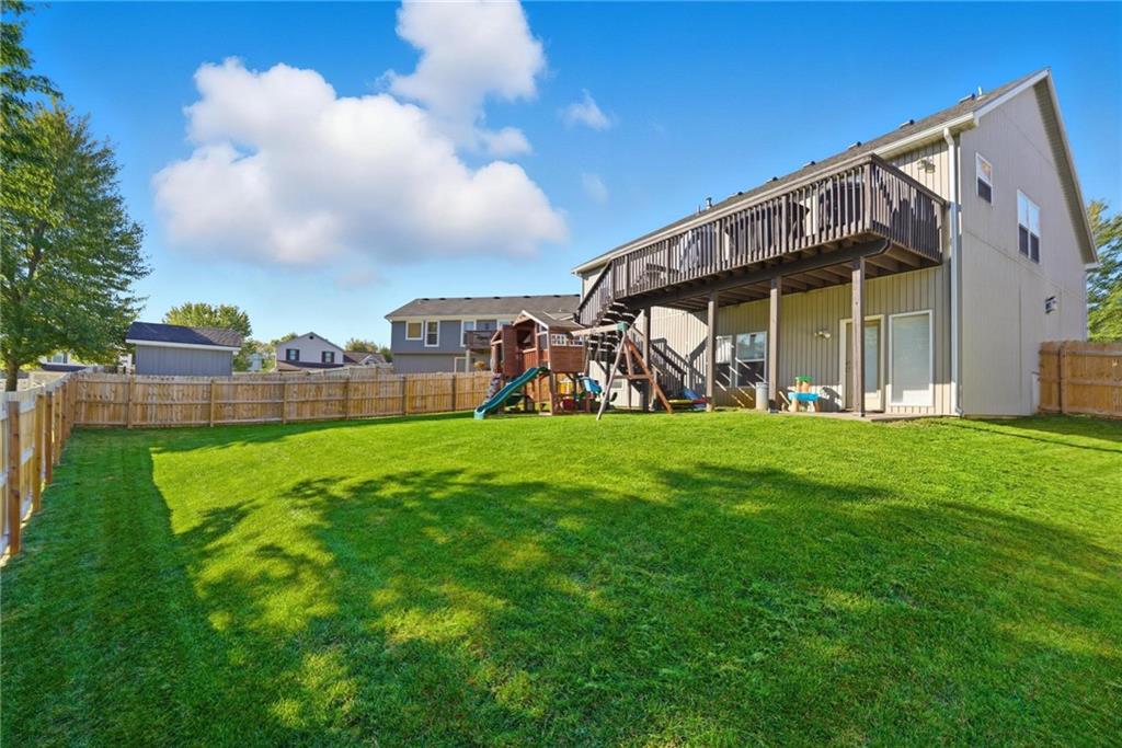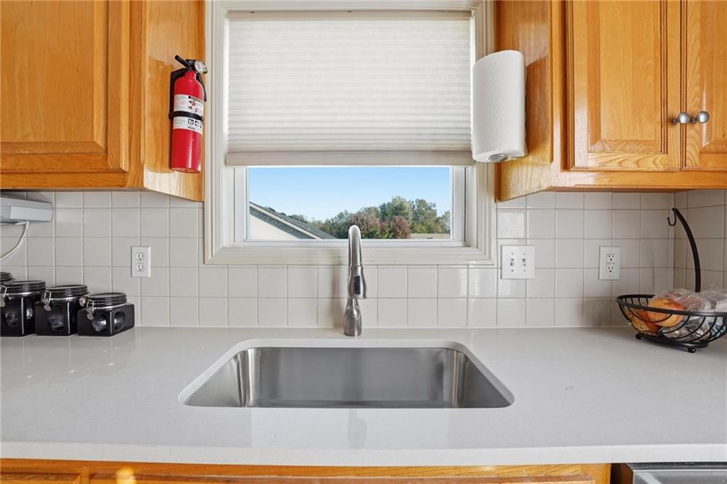 NEW Quartz countertops & deep s/s undermount sink, S/S appliances. 2024 – new roof, gutters, screens, fence. 2020 – New high efficiency Daiken HVAC with air cleaner. Beautifully updated CA split has vaulted ceilings, large windows. Great room has carpet, corner fireplace, ceiling fan. Up few steps to find wood floor in kitchen & dining, with vaulted ceiling, black stainless appliances, full glass door out to large deck with steps down to backyard. 2 bedrooms on this level, full bath has shower over tub, large laundry. Up a few steps to the primary suite. Huge bedroom, vaulted ceiling, fantastic walk-in closet. Primary suite bathroom is definition of luxury, separate vanities, jetted tub, separate shower, vaulted ceiling. Lower level family room has 9′ ceilings, walks out to covered patio and lush, fenced backyard. 4th bedroom has large closet. Full bath has tile floor & large shower. The sub basement has 9′ ceiling.
