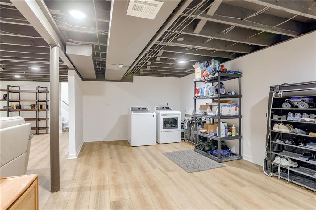 - Equipment Dishwasher, Disposal, Dryer, Microwave, Refrigerator, Built-In Electric Oven, Stainless Steel Appliance(s), Washer