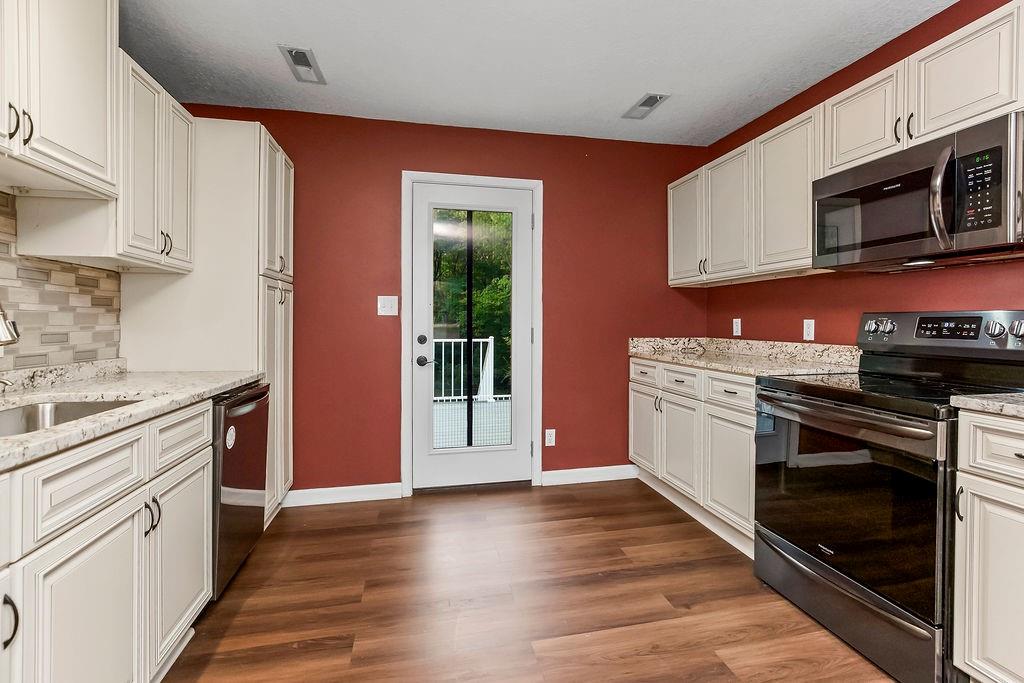 Great home on over 1 acre, this well maintained and thoughtfully updated 3-bedroom, 2.1-bath split-entry home offers space, comfort, and a long list of upgrades. Upstairs, you’ll find fresh flooring (2025) along with a recently painted kitchen, living room, and hallway. The updated kitchen features granite countertops, stainless steel appliances, and new cabinets (2021), plus direct access to the composite double deck (2022)—perfect for entertaining. The large master bedroom provides plenty of space to relax, while a second bedroom and hall bath complete the upper level. The finished walk-out basement offers even more living space, including a third bedroom with walk-out access, a full bathroom with a replaced shower (2021), and a cozy brick wood-burning fireplace that creates a warm gathering spot. The downstairs was also fully repainted, with new flooring installed in 2021. The exterior of the home has been just as well cared for, with a painted finish (2023), new gutters with leaf guards (2021), two new back exterior doors (2025), and a shady yard that backs to greenspace. Outdoor extras include a greenhouse set on piers (2022), a rebuilt bridge over the creek (2022), and an outdoor building with 200-amp separate electric service—expanded in 2023 for added versatility, could be used as 2 home offices. Large 2 car garage with a carport for more space! Additional updates include: a new hot water heater (2020), updated LED lighting throughout most of the home, and a Ring camera system that remains with the property. This home truly combines modern updates, flexible living spaces, and outdoor features that make it stand out, with amazing neighbors in a quiet neighborhood.