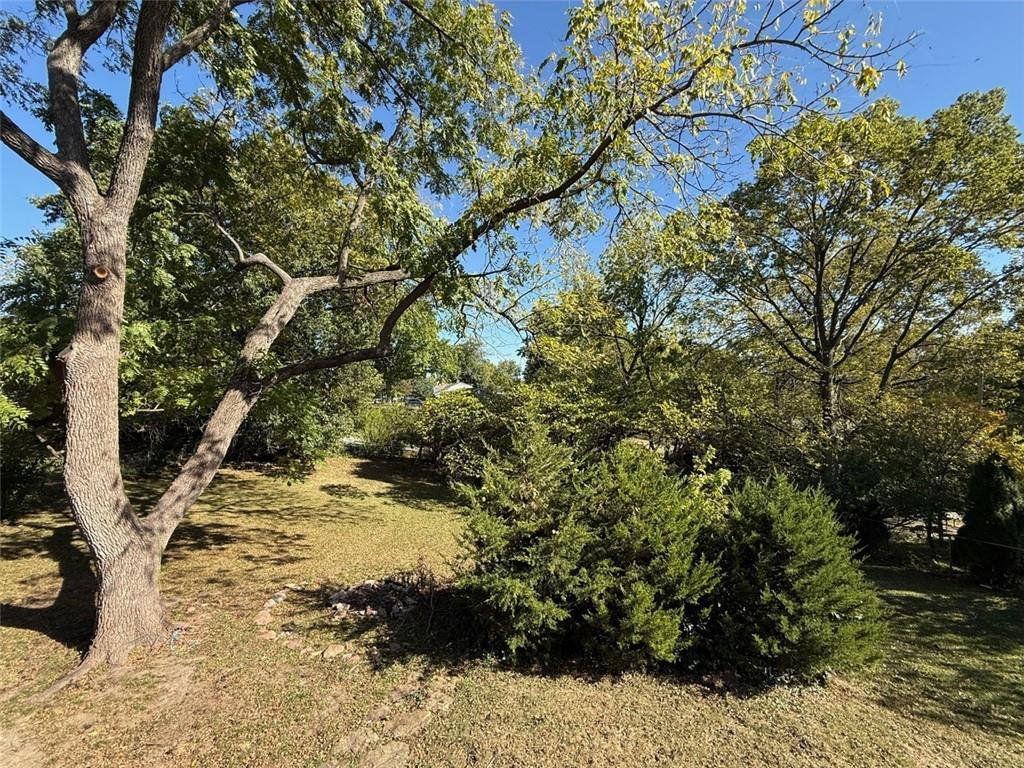 A treed yard offers shade, privacy, and a tranquil, natural setting.