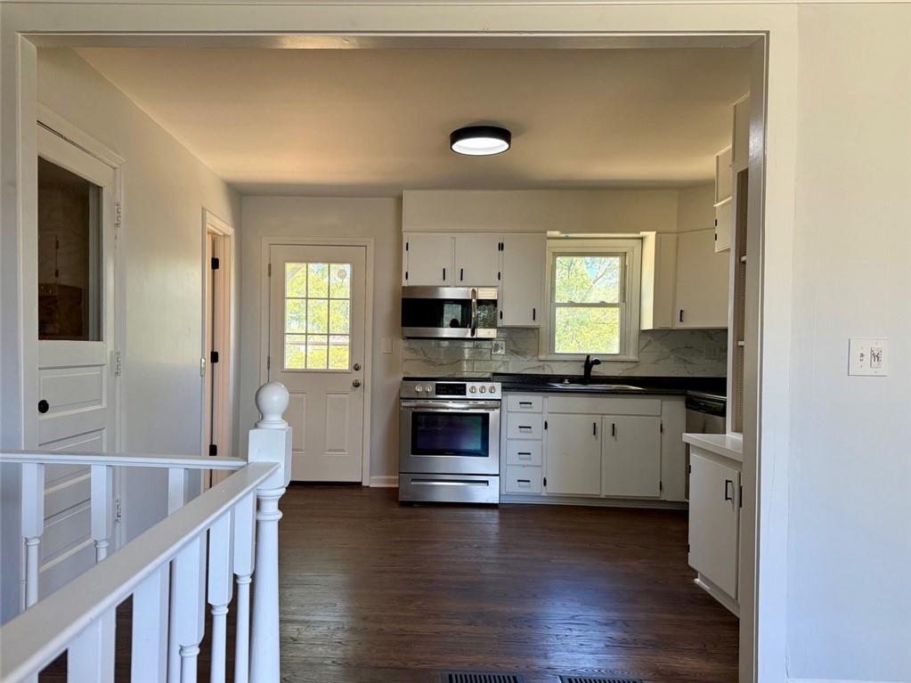 Refinished hardwood floors that gleam with warmth and charm throughout the main level.