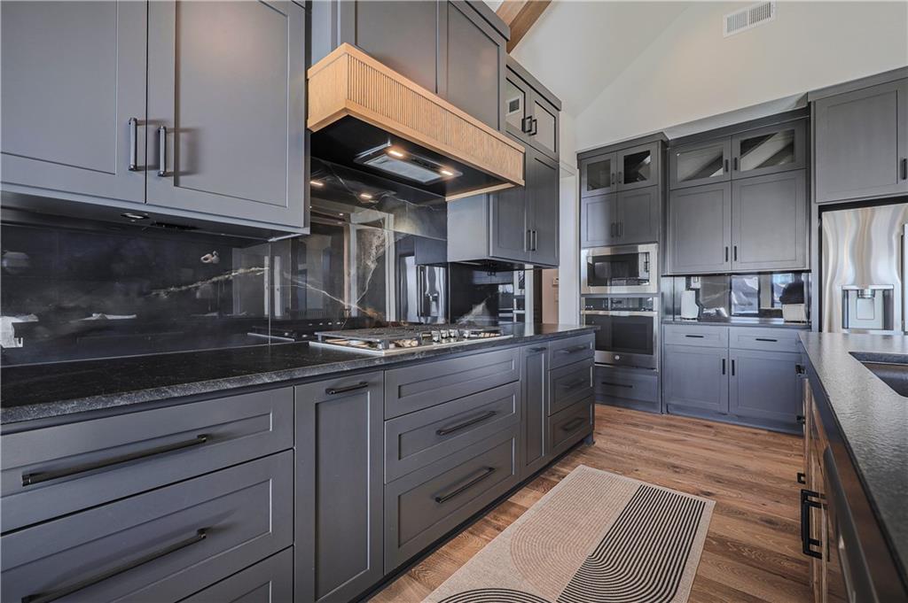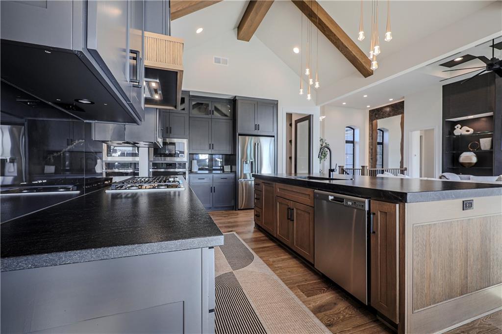 - Equipment Cooktop, Dishwasher, Disposal, Double Oven, Exhaust Fan, Microwave, Refrigerator, Gas Range, Stainless Steel Appliance(s)