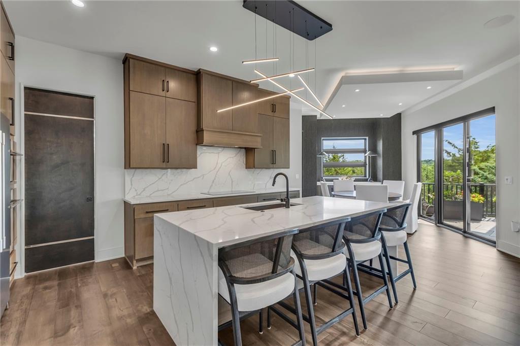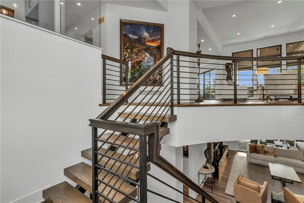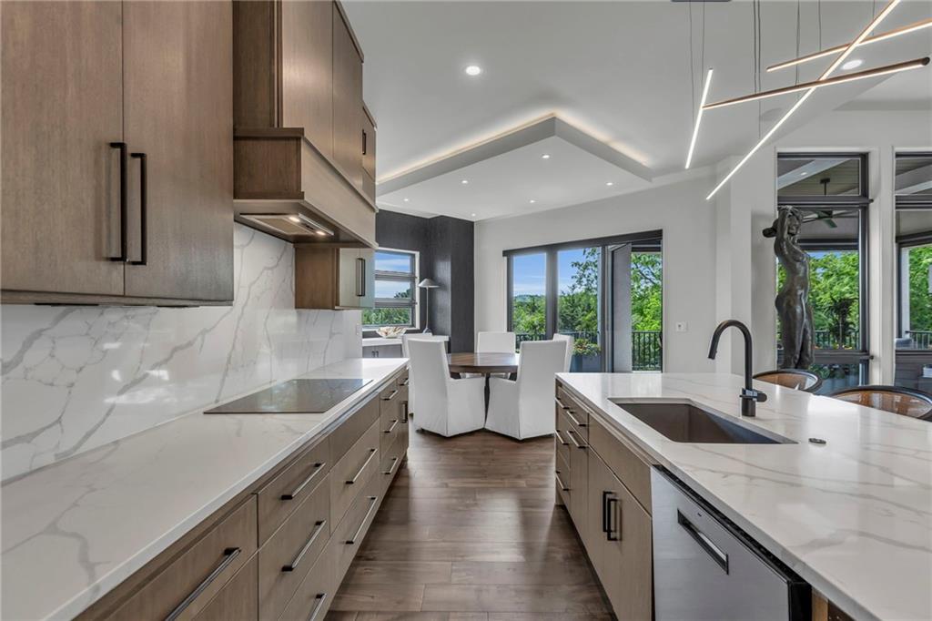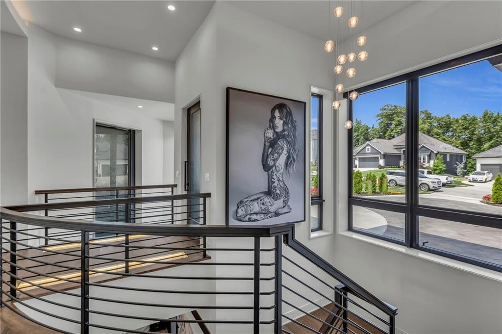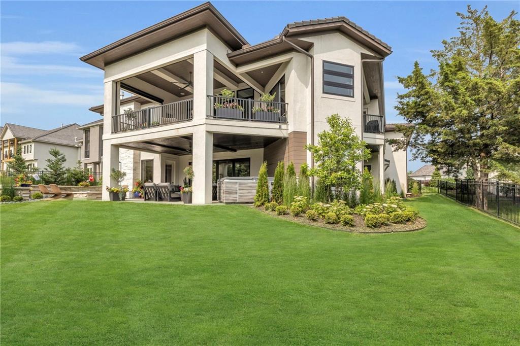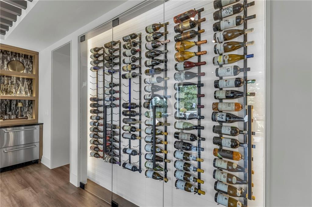 CONTEMPORARY AND LUXURY describes this Artisan designed home built by Casa Bella! A true masterpiece bringing in amazing architecture while touching all your senses! The 2 story water fall greets you at the entry along w/ dramatic ceiling, lighted walkway, leading to the great room w/ marble fireplace surround, back lit quartzite, floor to ceiling windows. The treed back drop is inviting & covered deck has new automatic screens. The Gourmet Kitchen has Carrera Marble island w/ waterfall edge, Frigidaire Refrigerator / Freezer, Cafe Induction Stove Top, Bosch Dishwasher, Cafe oven, Advantium microwace along w/ 2nd oven in the back pantry. Grill deck is a bonus feature right off the pantry. Perfectly positioned study w/ glass panels to bring in the light but nice and quiet for privacy. The Spa-like primary bath has marble floors, double headed shower w/ glass surround, soaking tub, large double vanity w/ plenty of cabinets. Primary bedroom includes built in headboard, king bed & side tables AND a beautiful view to the covered deck & backyard w/ fireplace for those chilly evenings. As you walk down the floating steel staircase w/ solid wood stairs, prepare to be WOW’d as the lower level is an Entertainer’s Dream. Back wet bar w/ beverage frig & refrigerator drawer & ice/freezer drawer. The quartzite counter lit island is in perfect position for wine tastings next to the wine feature wall. The 3rd fireplace is the perfect conversation area while the media space is ample and comfortable. You can walk right out to the covered patio & enjoy the fire pit, lush fenced backyard and privacy. 3 bedrooms w/ 2 1/2 baths on the LL. The home gym is amazing space with storage tucked away. Pet Lovers will enjoy the “Dog House”. 8′ deep chocolate modern interior solid wood doors w/ metal inlays, paved stone driveway, Fire & Water feature front and back, epoxy’d garage floor, remote blinds on front entry & sliding back door!