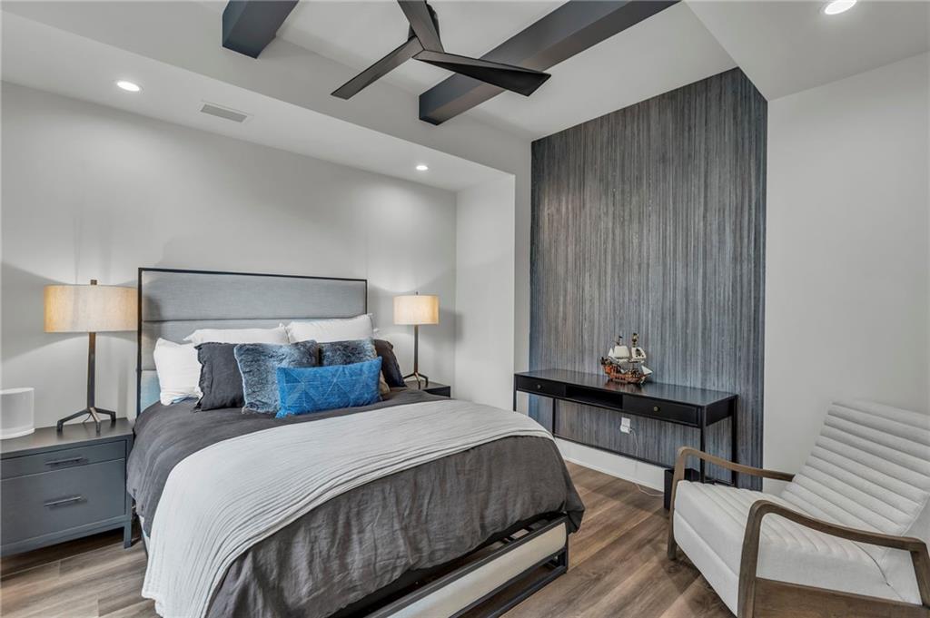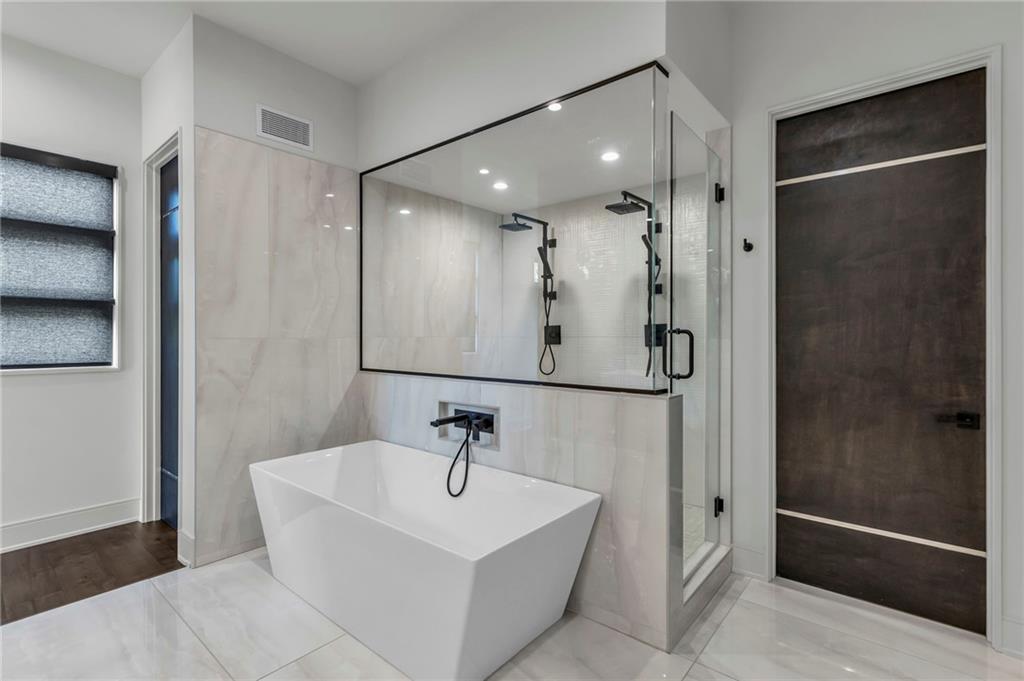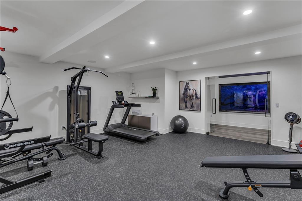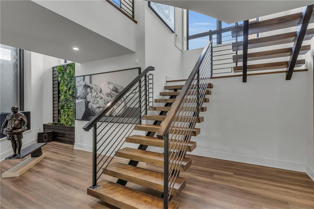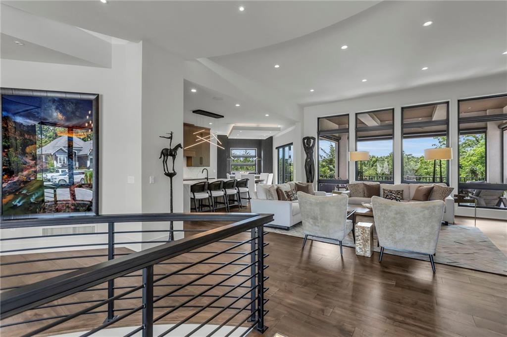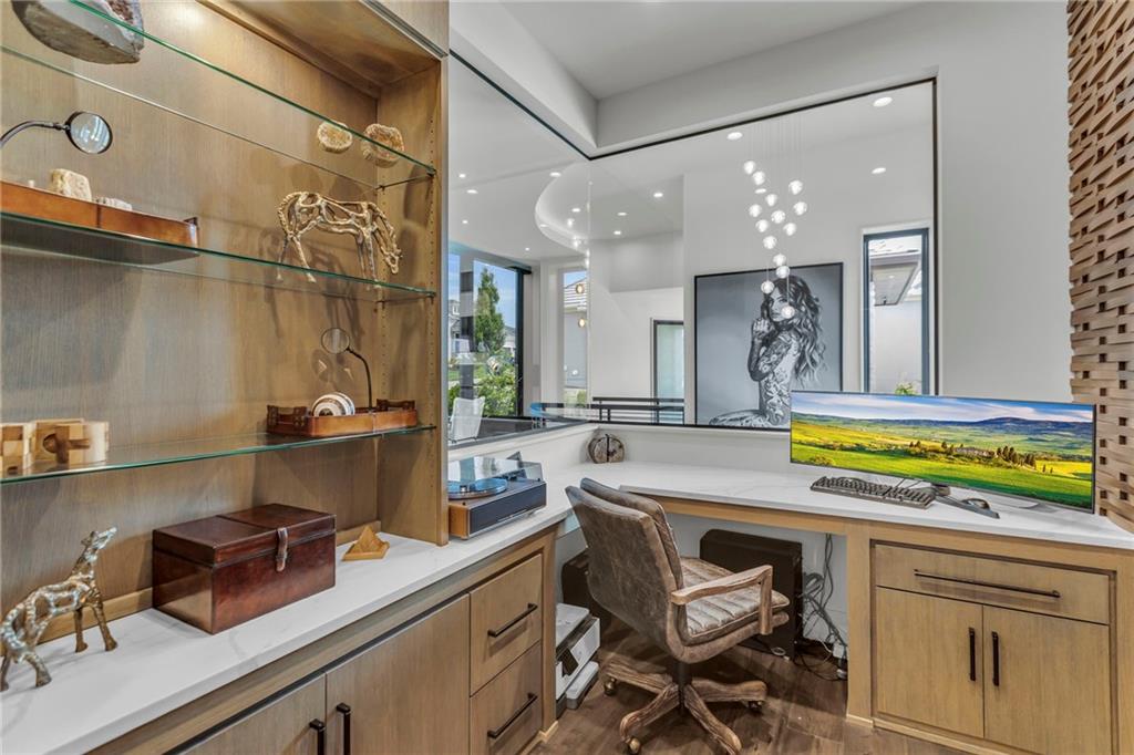 CONTEMPORARY AND LUXURY describes this Artisan designed home built by Casa Bella! A true masterpiece bringing in amazing architecture while touching all your senses! The 2 story water fall greets you at the entry along w/ dramatic ceiling, lighted walkway, leading to the great room w/ marble fireplace surround, back lit quartzite, floor to ceiling windows. The treed back drop is inviting & covered deck has new automatic screens. The Gourmet Kitchen has Carrera Marble island w/ waterfall edge, Frigidaire Refrigerator / Freezer, Cafe Induction Stove Top, Bosch Dishwasher, Cafe oven, Advantium microwace along w/ 2nd oven in the back pantry. Grill deck is a bonus feature right off the pantry. Perfectly positioned study w/ glass panels to bring in the light but nice and quiet for privacy. The Spa-like primary bath has marble floors, double headed shower w/ glass surround, soaking tub, large double vanity w/ plenty of cabinets. Primary bedroom includes built in headboard, king bed & side tables AND a beautiful view to the covered deck & backyard w/ fireplace for those chilly evenings. As you walk down the floating steel staircase w/ solid wood stairs, prepare to be WOW’d as the lower level is an Entertainer’s Dream. Back wet bar w/ beverage frig & refrigerator drawer & ice/freezer drawer. The quartzite counter lit island is in perfect position for wine tastings next to the wine feature wall. The 3rd fireplace is the perfect conversation area while the media space is ample and comfortable. You can walk right out to the covered patio & enjoy the fire pit, lush fenced backyard and privacy. 3 bedrooms w/ 2 1/2 baths on the LL. The home gym is amazing space with storage tucked away. Pet Lovers will enjoy the “Dog House”. 8′ deep chocolate modern interior solid wood doors w/ metal inlays, paved stone driveway, Fire & Water feature front and back, epoxy’d garage floor, remote blinds on front entry & sliding back door!
