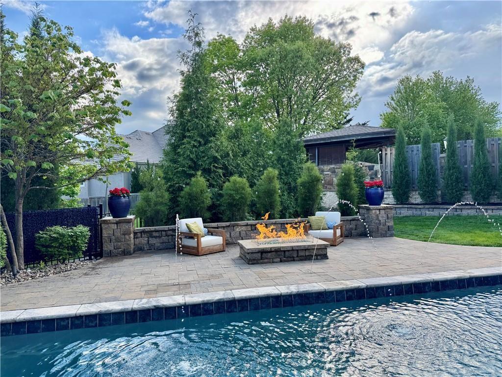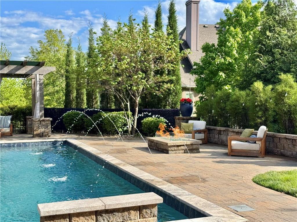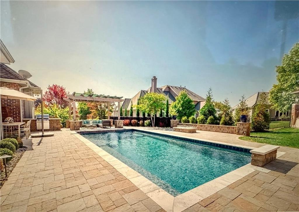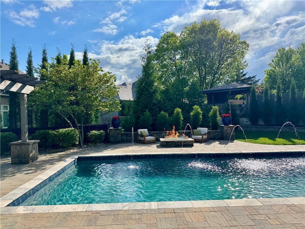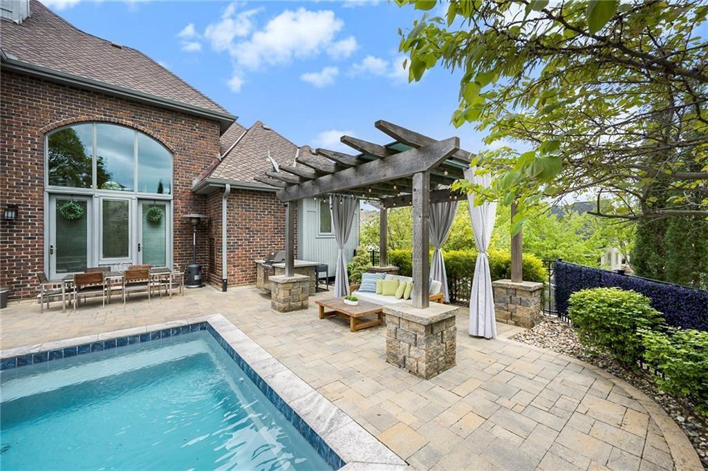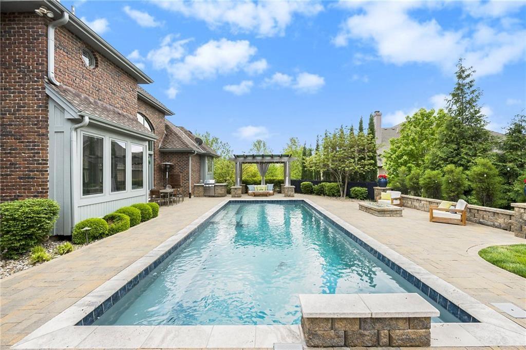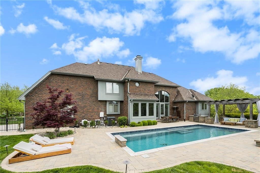 Stunning All-Brick 1.5 Story Home with Outdoor Oasis! Welcome to your dream retreat! This exquisite all-brick home boasts a spacious 1.5 story layout, perfectly designed for both relaxation and entertainment. Step outside to your personal outdoor oasis, featuring a heated saltwater pool surrounded by enchanting lights and fountains. Enjoy cozy evenings by the gas fire pit or host gatherings in the well-equipped cooking area or under the charming pergola. Inside, the main level showcases soaring ceilings and elegant hardwood floors throughout. The luxurious primary suite offers a private sanctuary, while the dedicated office space and inviting hearth create a perfect blend of comfort and functionality. The kitchen offers a large island, double oven, 2 sinks and walk-in pantry. The formal dining room is ideal for hosting dinner parties and family gatherings. Venture upstairs to discover three generously sized bedrooms, each with walk-in closets, built-ins, and baths, providing ample space for family and guests. The recently finished lower level is a true bonus, featuring a stylish bath and a wet bar, perfect for entertaining or movie nights! With an impressive six garage spaces, you’ll have plenty of room for vehicles and storage. Recent upgrades include a durable 50-year roof and a new HVAC system, ensuring peace of mind for years to come. Situated on a large corner lot, this home offers both space and privacy in a desirable neighborhood. Don’t miss the opportunity to make this stunning property your own!
