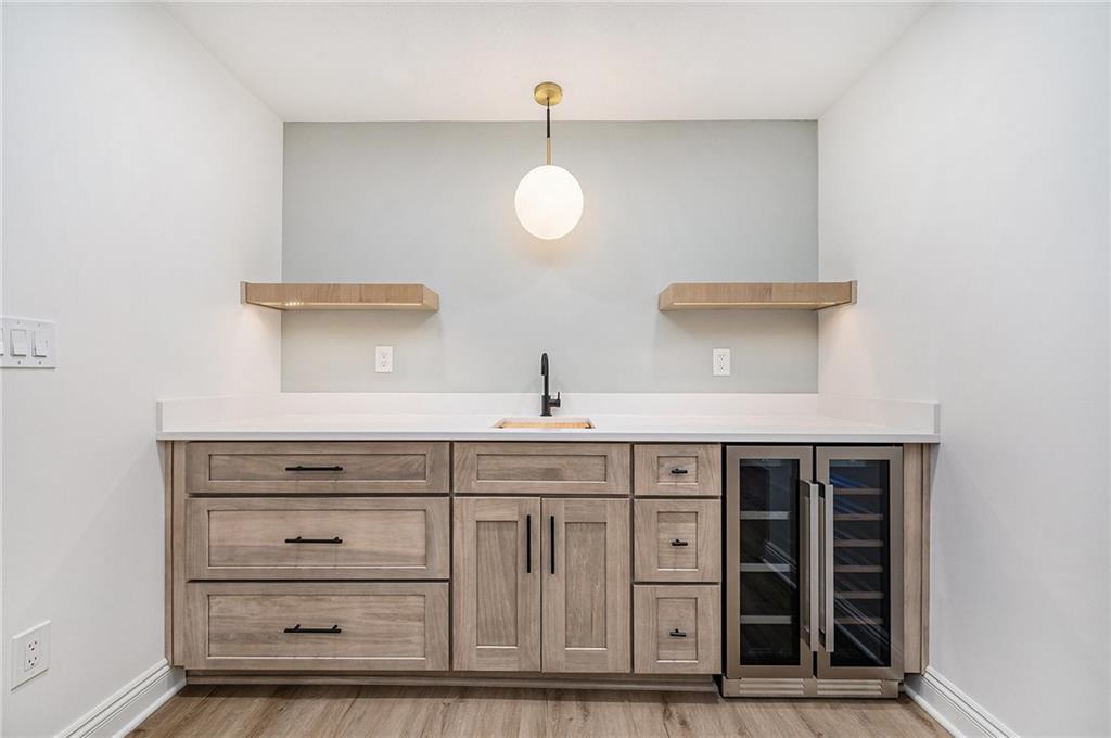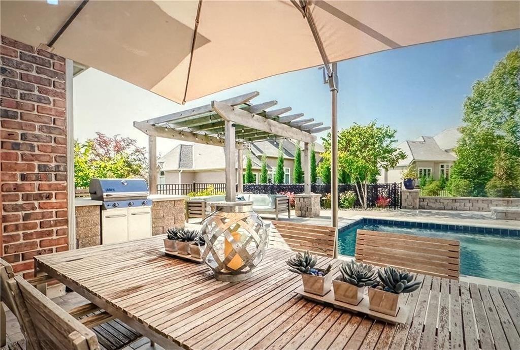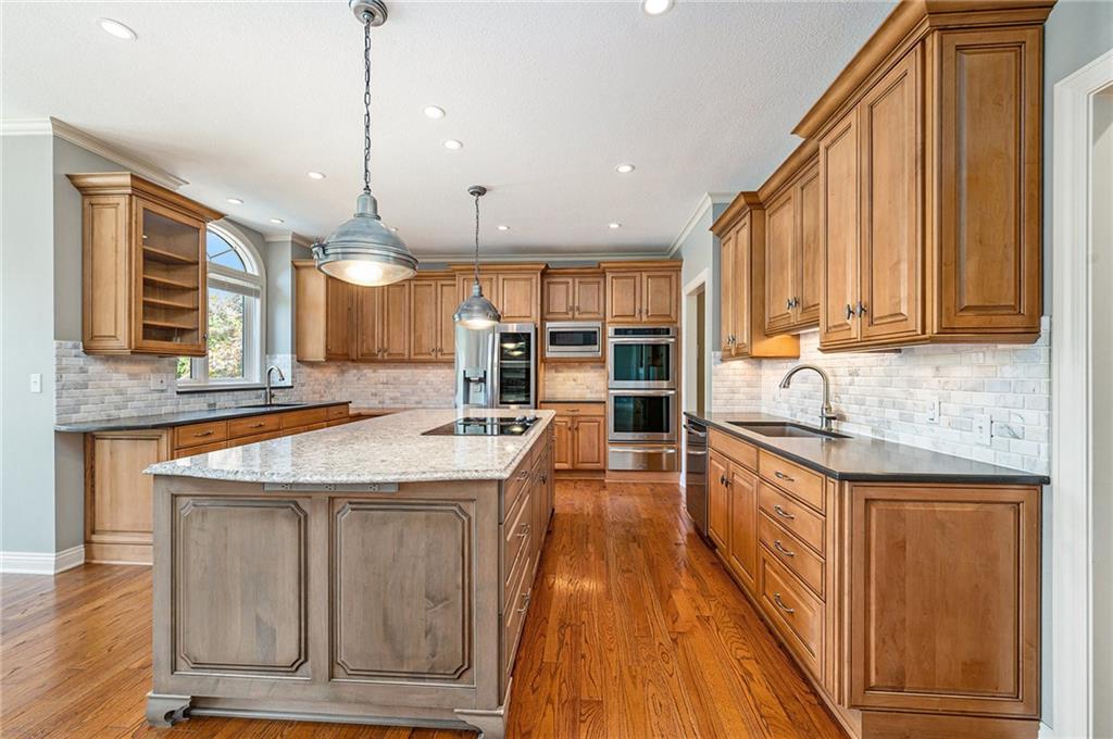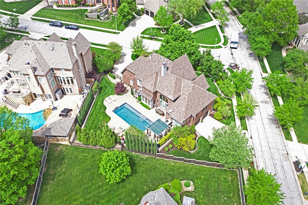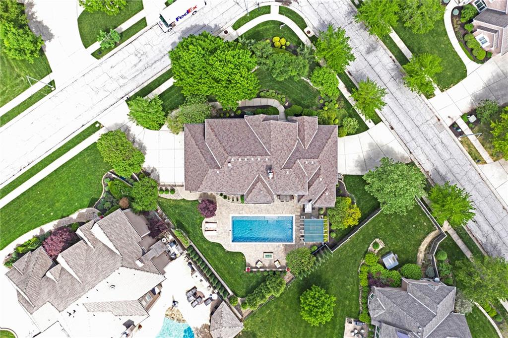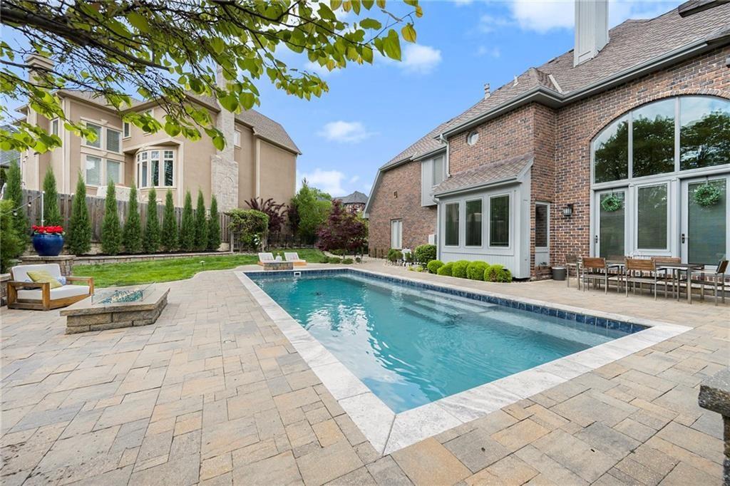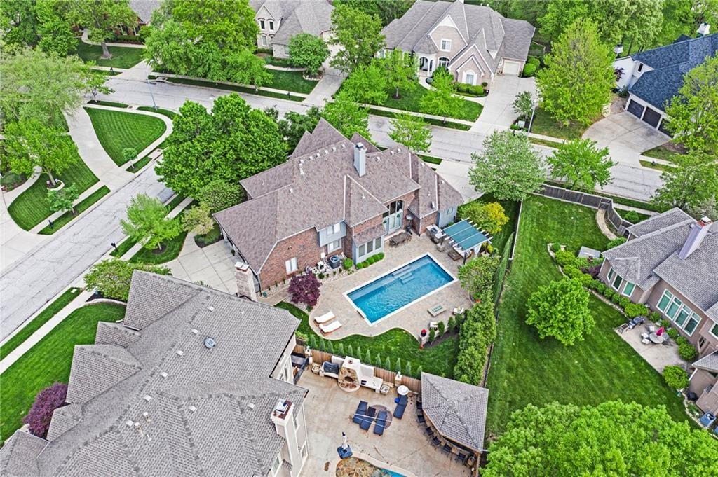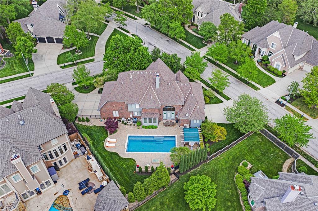 Stunning All-Brick 1.5 Story Home with Outdoor Oasis! Welcome to your dream retreat! This exquisite all-brick home boasts a spacious 1.5 story layout, perfectly designed for both relaxation and entertainment. Step outside to your personal outdoor oasis, featuring a heated saltwater pool surrounded by enchanting lights and fountains. Enjoy cozy evenings by the gas fire pit or host gatherings in the well-equipped cooking area or under the charming pergola. Inside, the main level showcases soaring ceilings and elegant hardwood floors throughout. The luxurious primary suite offers a private sanctuary, while the dedicated office space and inviting hearth create a perfect blend of comfort and functionality. The kitchen offers a large island, double oven, 2 sinks and walk-in pantry. The formal dining room is ideal for hosting dinner parties and family gatherings. Venture upstairs to discover three generously sized bedrooms, each with walk-in closets, built-ins, and baths, providing ample space for family and guests. The recently finished lower level is a true bonus, featuring a stylish bath and a wet bar, perfect for entertaining or movie nights! With an impressive six garage spaces, you’ll have plenty of room for vehicles and storage. Recent upgrades include a durable 50-year roof and a new HVAC system, ensuring peace of mind for years to come. Situated on a large corner lot, this home offers both space and privacy in a desirable neighborhood. Don’t miss the opportunity to make this stunning property your own!