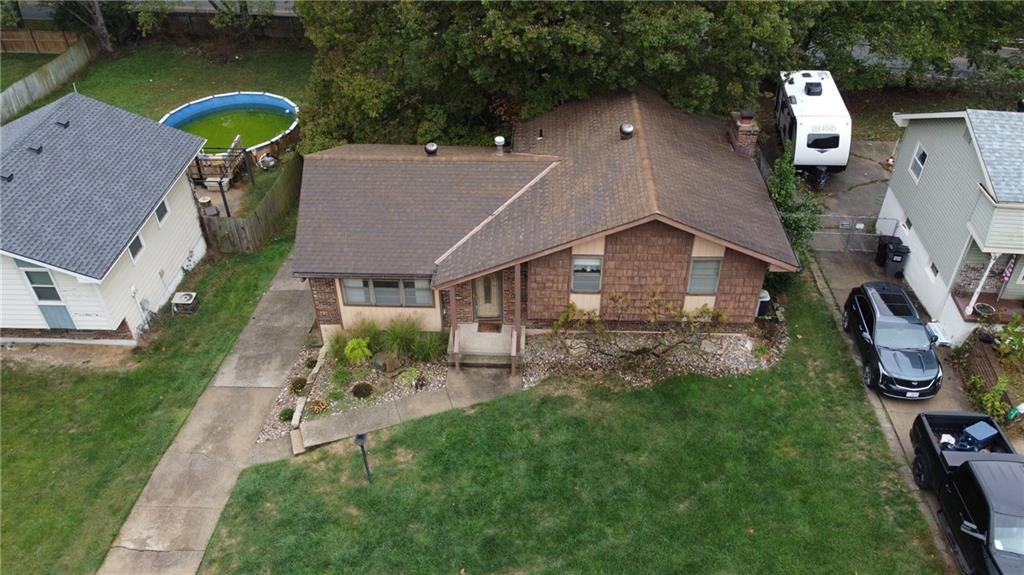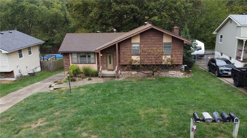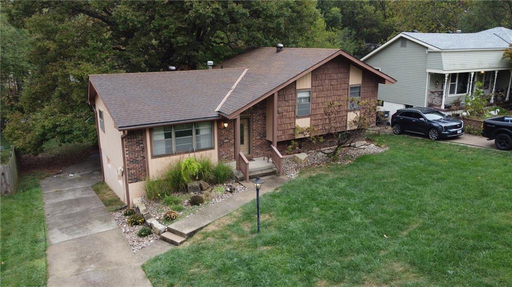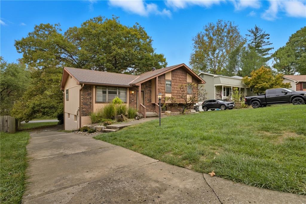 Imagine putting your own touch on this well-loved vintage home in a highly rated school district. With great bones and decades of pride in ownership, this property is ready for your cosmetic updates and creative improvements. The upper level features all bedrooms, while the main level offers a comfortable layout with living, dining, and kitchen areas that flow together. The walkout basement provides a cozy gathering spot to snuggle by the fireplace or host your next Chiefs game. Rear-entry garage doors preserve your curb appeal and complete this home’s charming layout. A perfect opportunity to invest in location, potential, and lasting value. Located in the Park Hill School District and Park Hill South High School