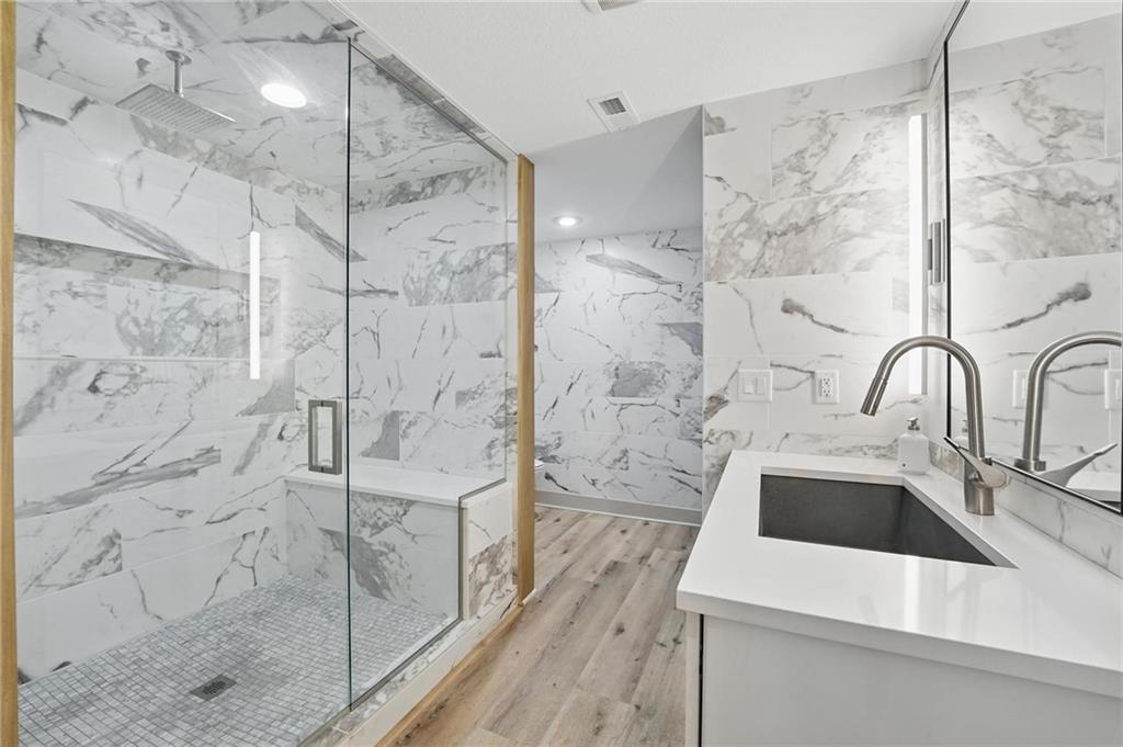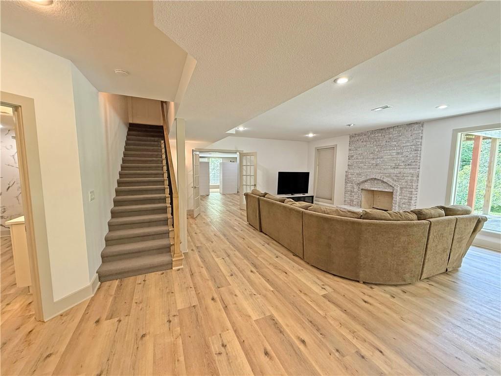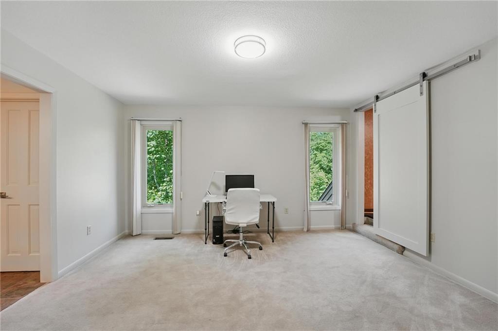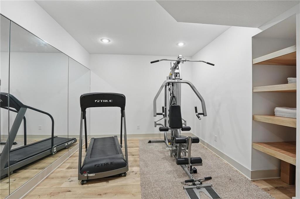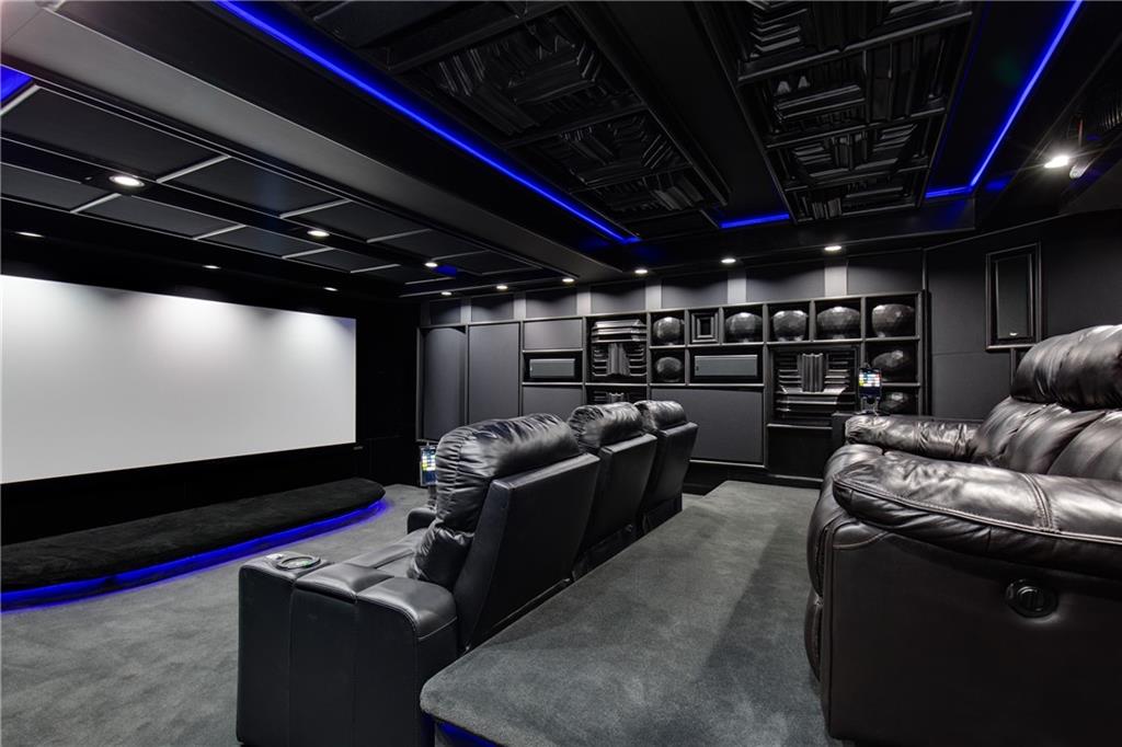 The walk-out lower level is an entertainer’s paradise, complete with a second kitchen, custom-built theater room, additional living space, dedicated workout room, and a second fireplace that makes the whole space feel warm and inviting. You’ll also find a second dedicated office plus extra storage in the suspended garage area.