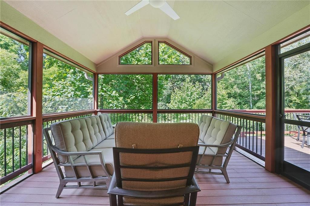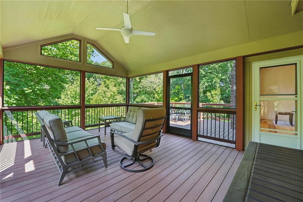 Step outside to a private backyard oasis with a screened-in composite deck, open-air deck space, and a walk-out patio that leads to mature fruit trees and a peaceful creek view—your own slice of nature without leaving the city.