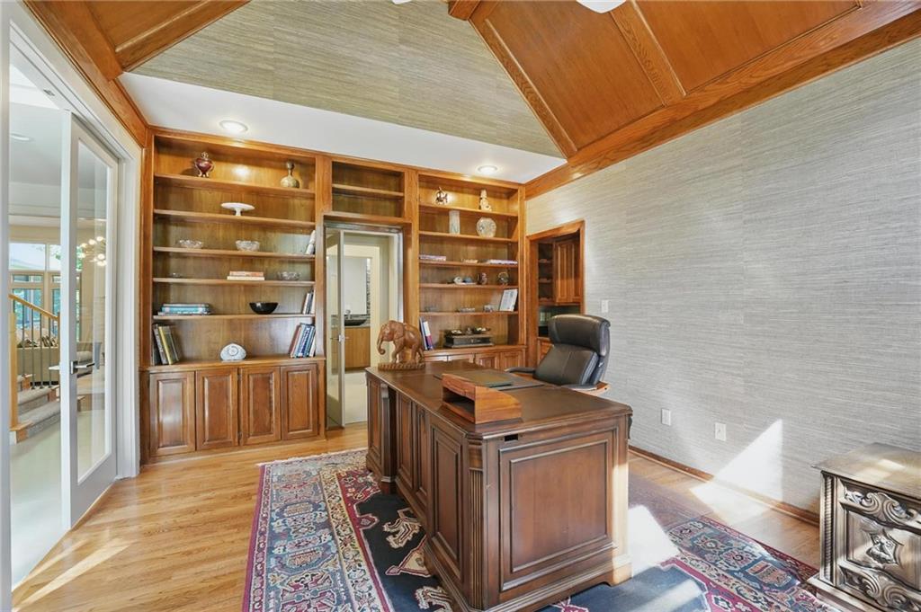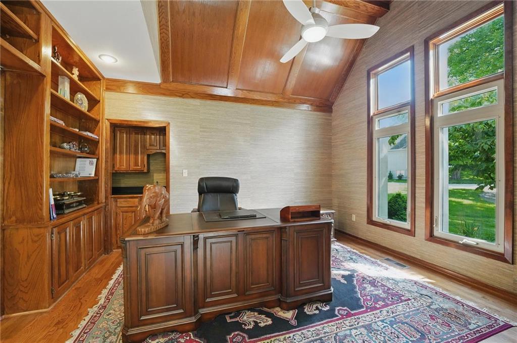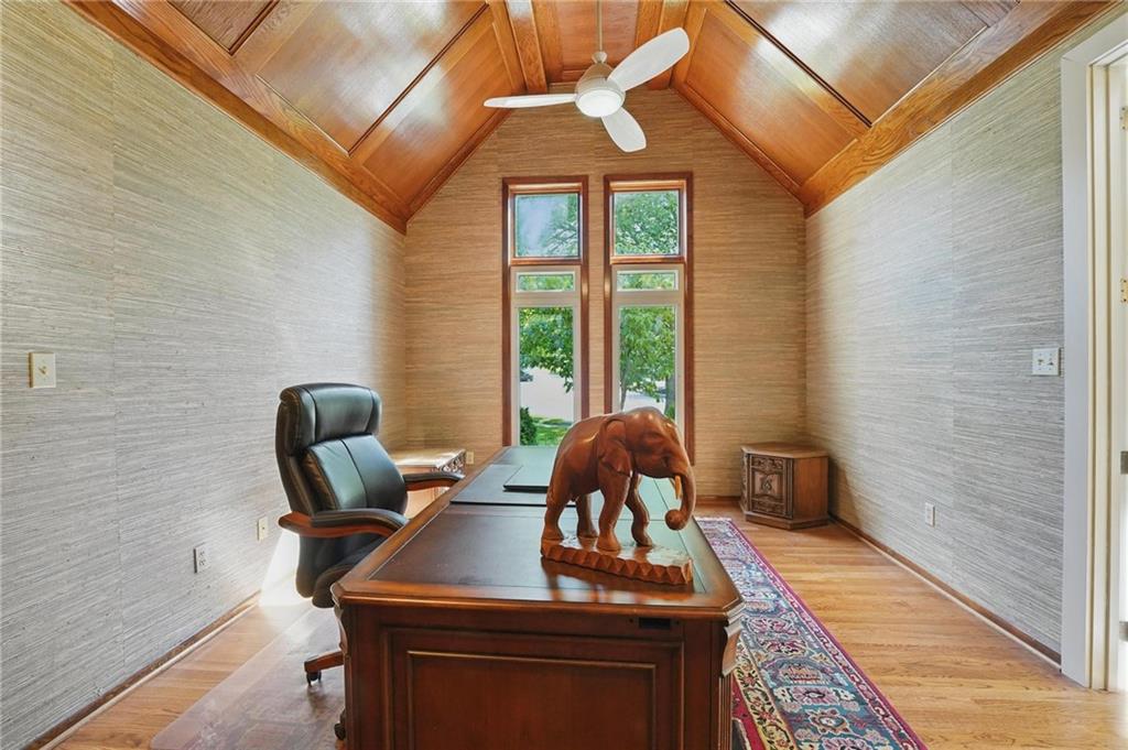 The main level showcases a bright and inviting sitting room, large eat-in kitchen, and a family room anchored by a cozy fireplace, all with tall ceilings and generous windows that bring the outdoors in. You’ll love the dedicated office space with a stunning paneled wood ceiling that adds warmth and character.