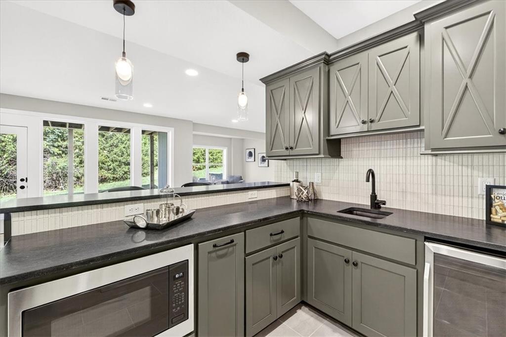 READY TO MOVE IN!!! New Mark Homes award winning Morgan Reverse plan! You have found the ONE! Stunning open plan on beautiful wooded lot. Main level features incredible kitchen with quartz countertops, custom cabinetry and loads of storage. Large living room with fireplace and wall of windows. Owner’s suite on main level will WOW you with its special wall detail/upgraded trim, gorgeous bath and huge closet. 2nd bedroom on main level is perfect for living or home office. Lower level walks out to wooded lot. Stunning full bar that will blow you away!!!!!! Large rec room AND 2 additional bedrooms and full bath. Do not miss this one!