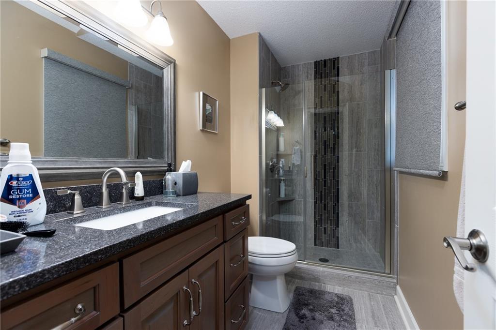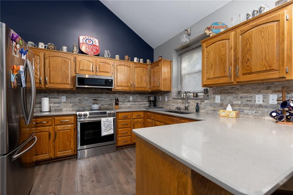 Beautiful updated home- Features include wood floors, granite countertops, backsplash, and tile in all bathrooms. The remodeled kitchen offers modern finishes and plenty of storage. Enjoy cozy evenings by the fireplace in the Rec room or relax in the finished walkout basement. Exterior highlights include durable vinyl siding, a newer roof, and a tree-lined yard providing privacy and charm.