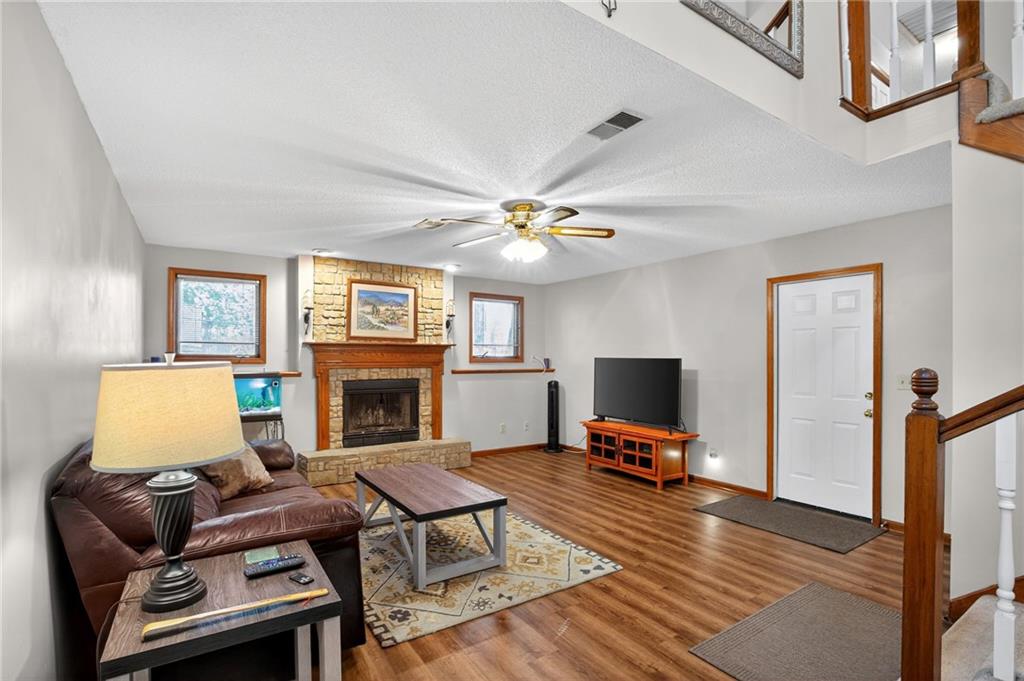 Step inside to find a welcoming formal living room filled with natural light, a large kitchen with plenty of counter and cabinet space, and a bright breakfast room that overlooks the family room. The kitchen also provides direct access to the backyard, making it perfect for entertaining or enjoying time outdoors. The family room features a cozy fireplace and generous space for gatherings or relaxing nights in.