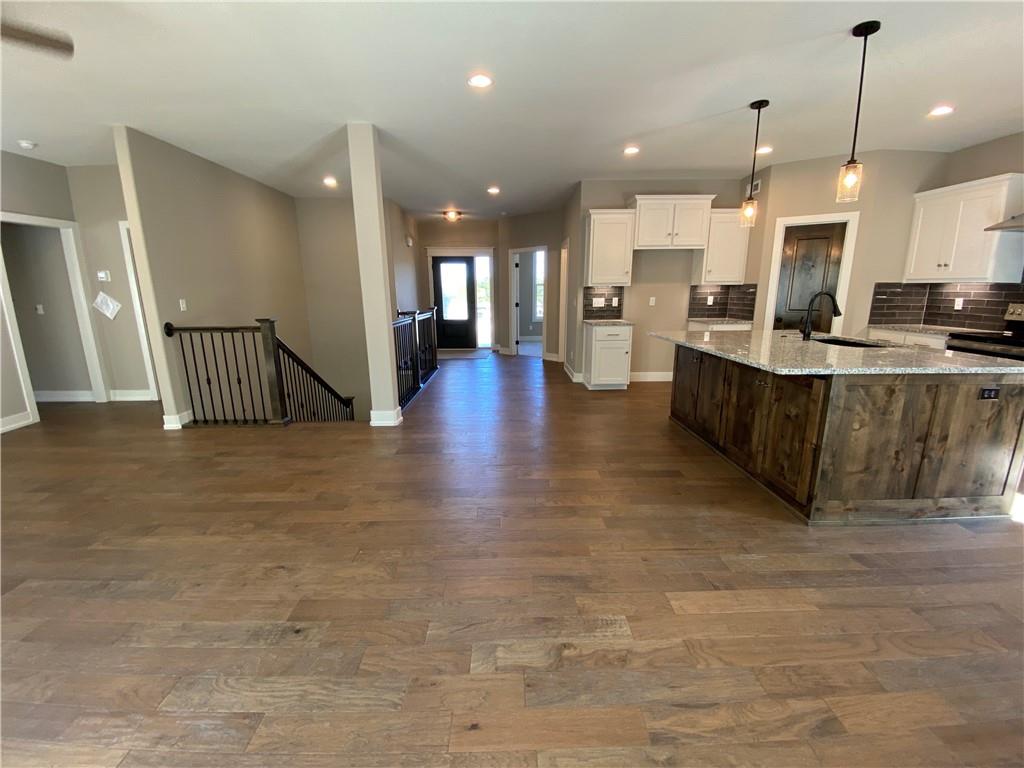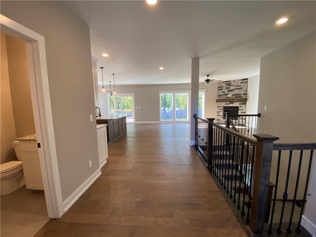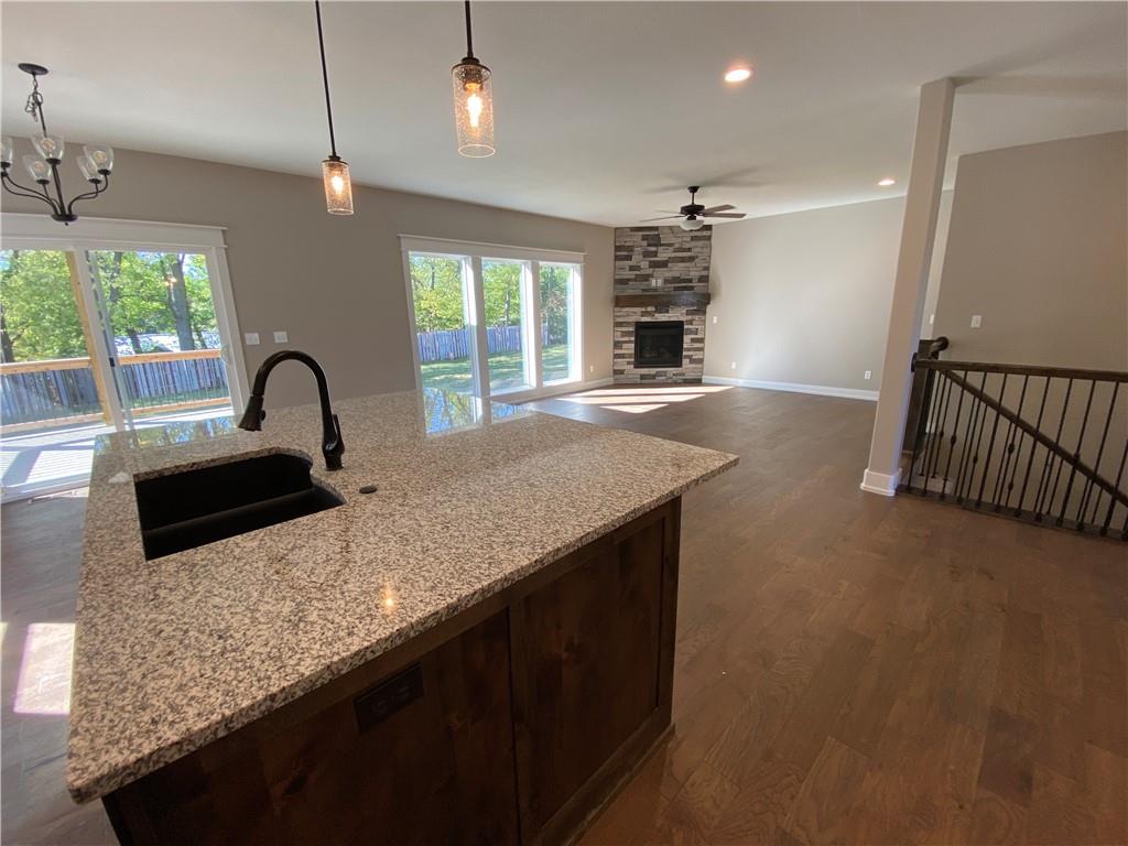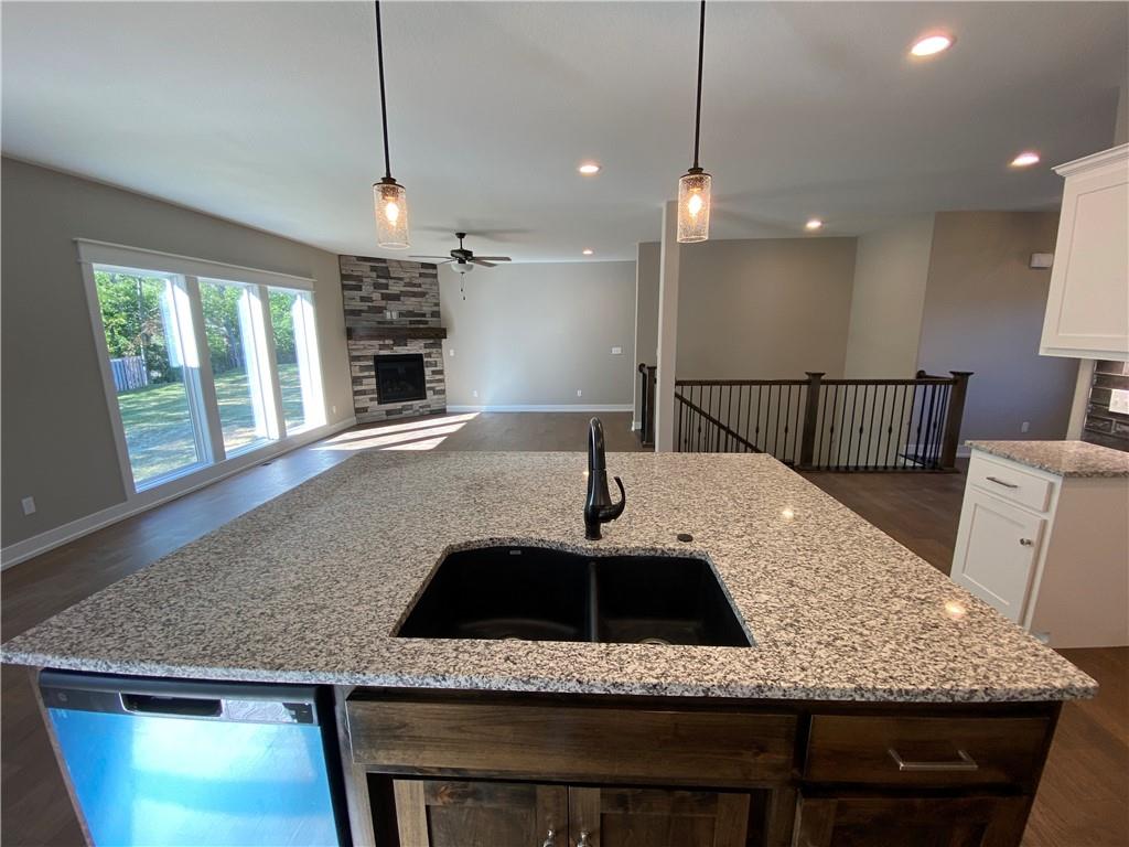 The Dixon II is a 5 bed 3.5 bath with large granite island, butlers pantry, covered composite deck with ceiling fan, stone fireplace, laundry on main, walk-in master closet, dual quartz master vanity, soaker tub, separate shower, wood floor in owners suite bedroom, wooded backyard, daylight basement, wet bar with full fridge and ice/water line, two full baths downstairs for 3 bedrooms, 1 full and one half bath on main floor, sprinkler system, high efficiency furnace, blown insulation and sprinkler system. All square footage is approximate. This home is complete and move-in-ready.